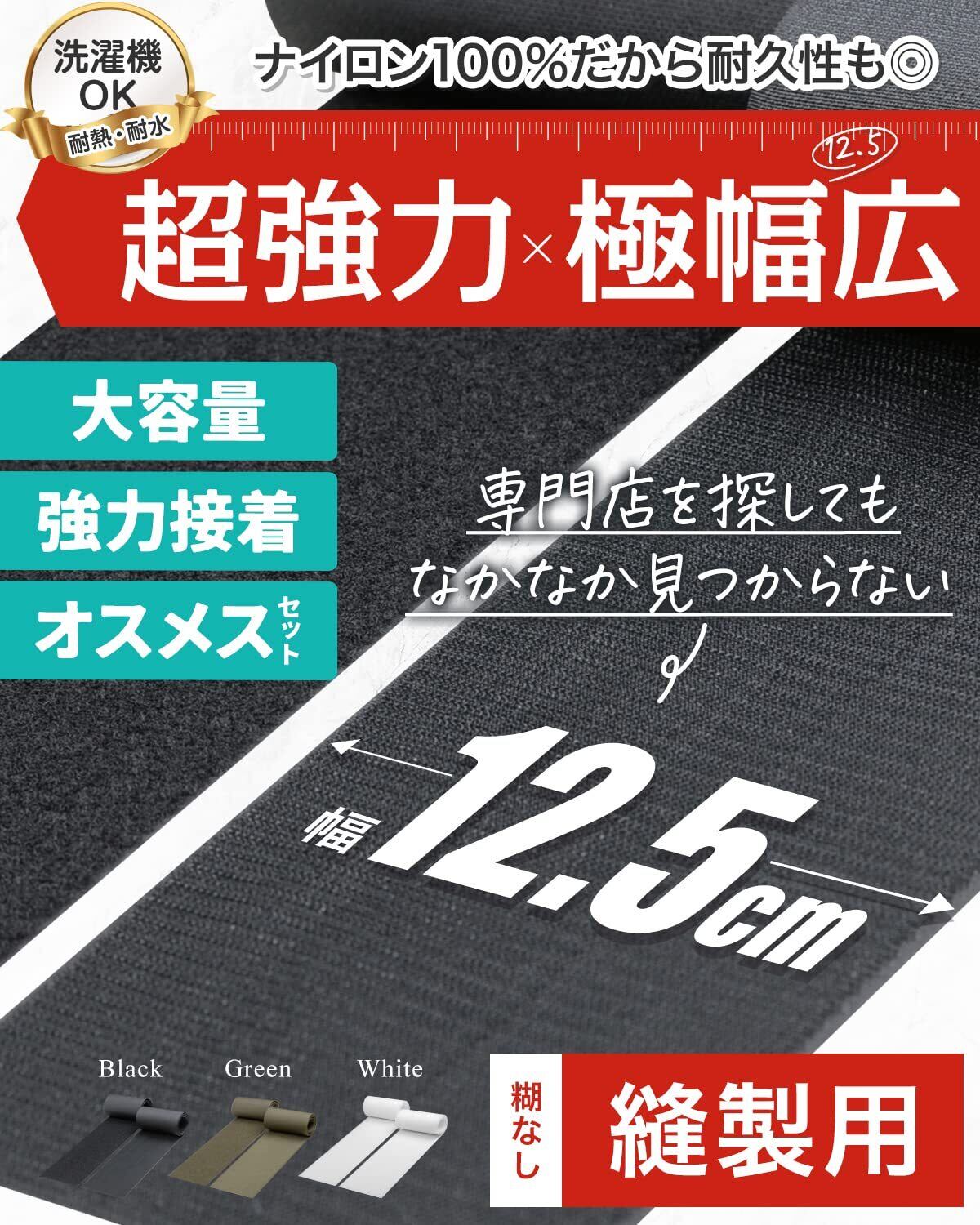 面ファスナー 強力 縫製用 マジック式 大容量 幅広12.5cm×1m 縫い付け 手芸 サバゲー オスメスセット (ブラック)