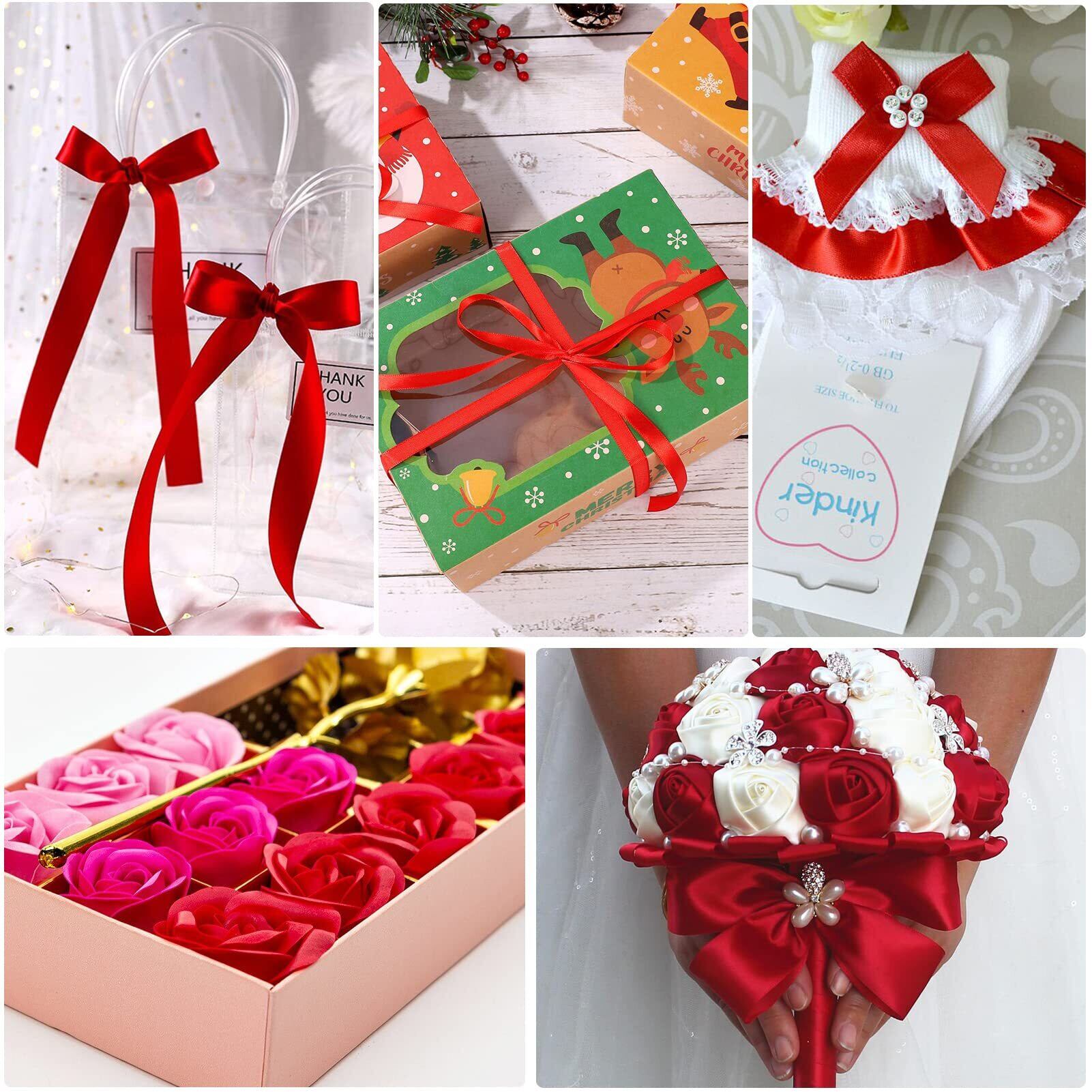 25mmレッドサテンリボン、23メートル手芸用ファブリックリボン、ギフトラッピング、ヘアリボン、誕生日や結婚式の装飾