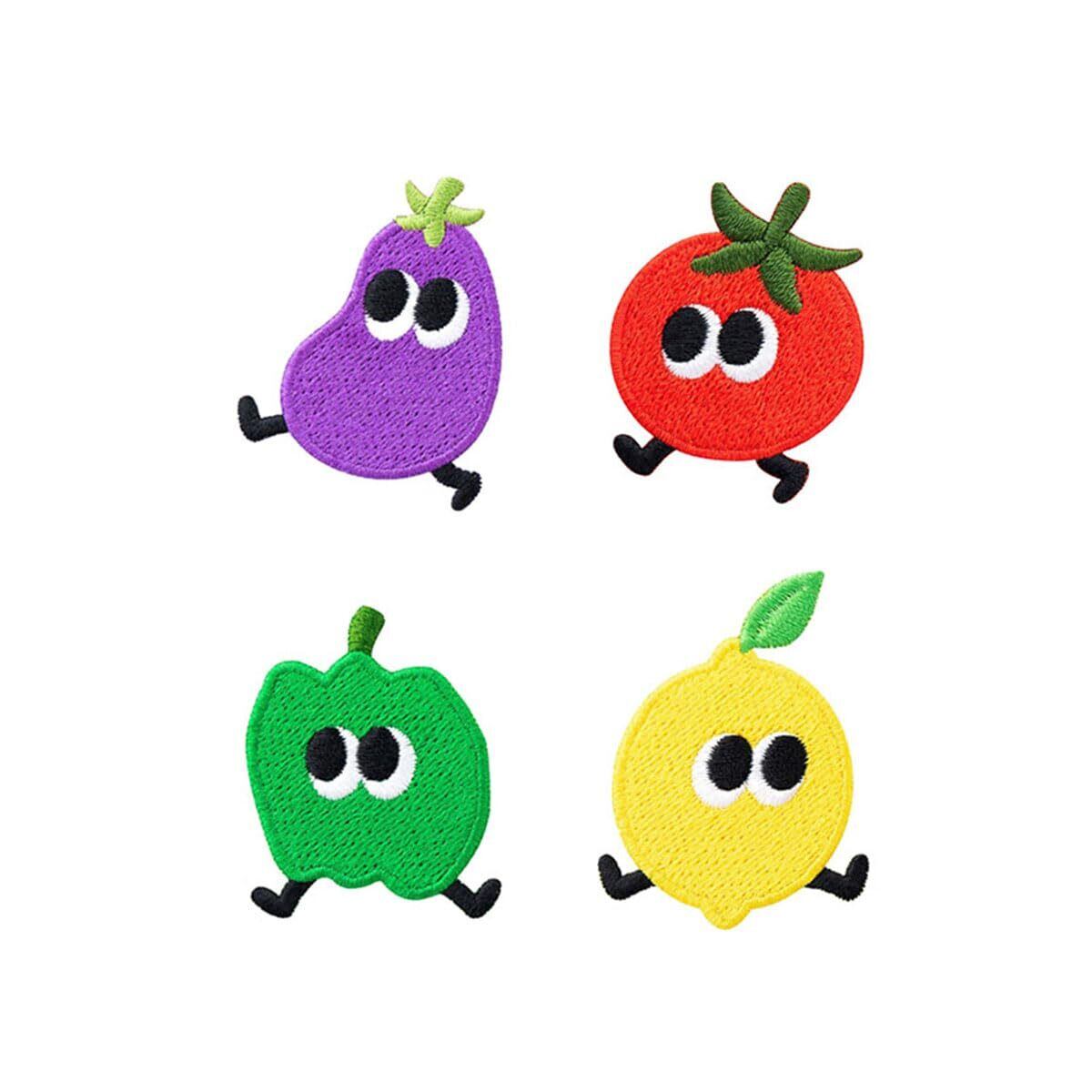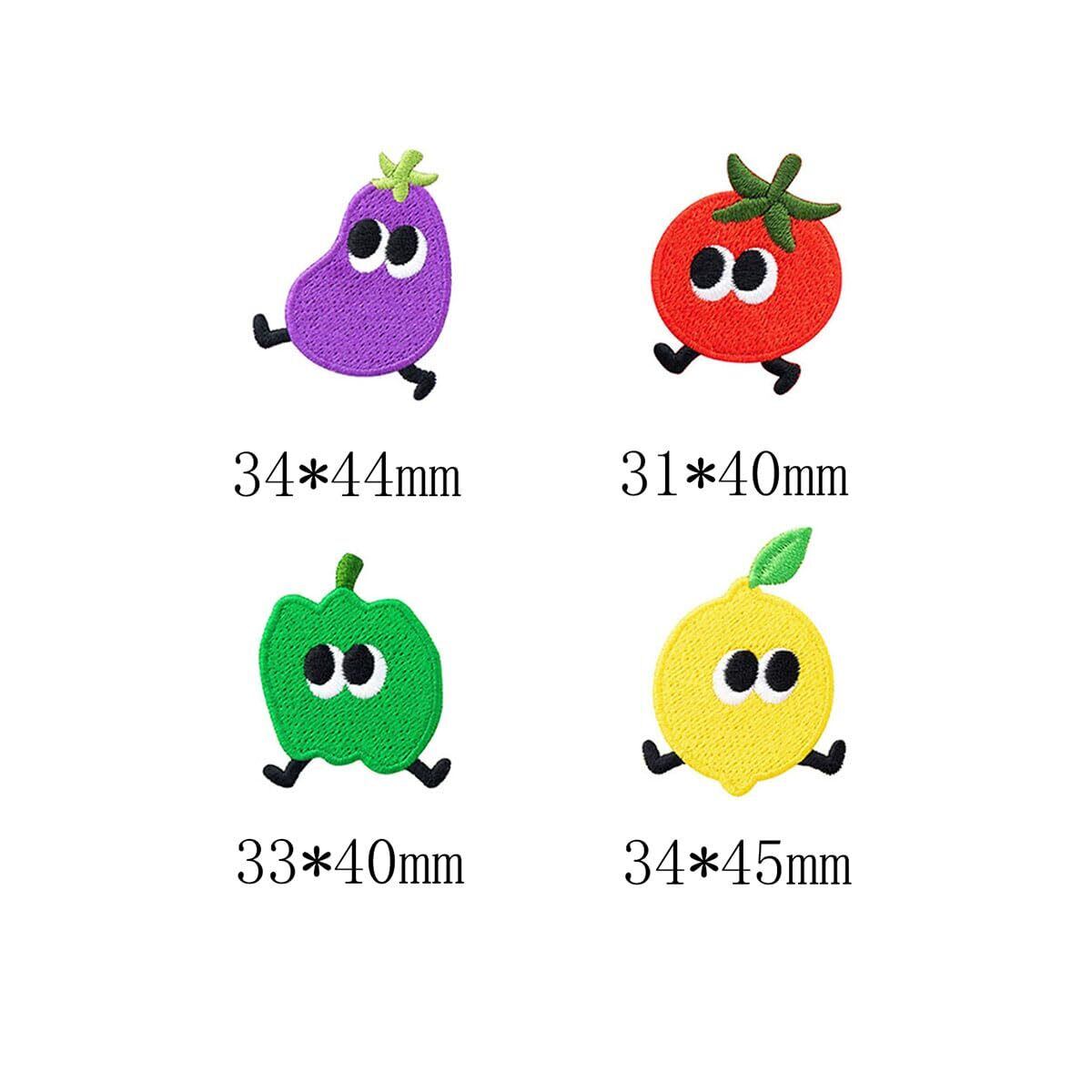 アイロンワッペン 動物 ベルクロ ワッペン アイロン アップリケ おしゃれ 刺繍 (果物の表情 4点セット)