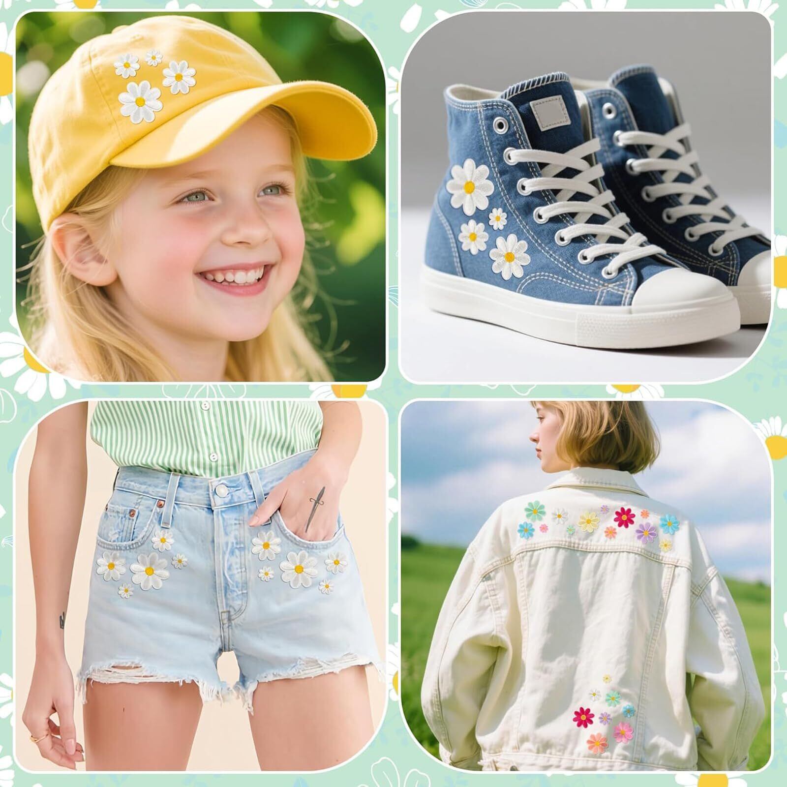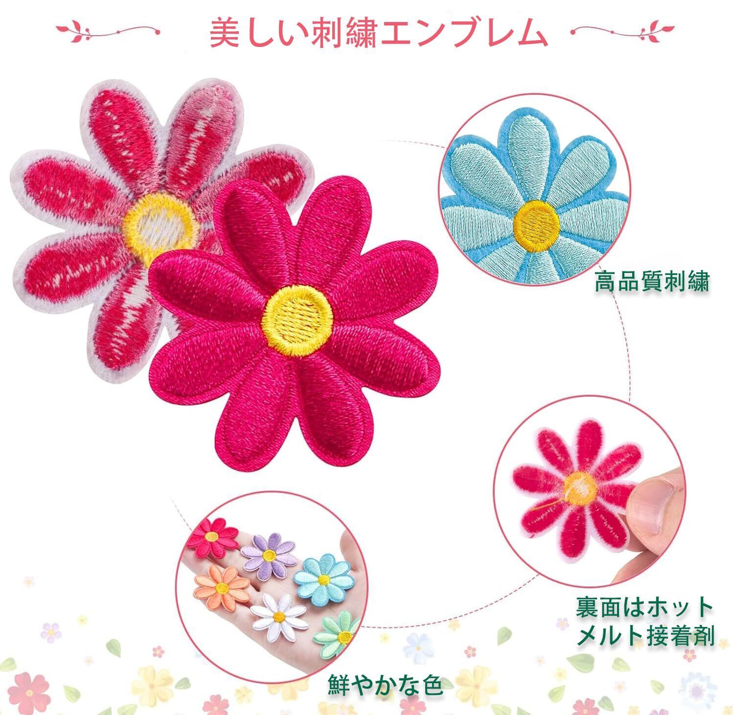 【32個お得セット】マイクラ ワッペン 32枚セット、4つのサイズ、8色を含む大人気なヒナギクの刺繍ワッペンセット、必要に応じて適切なシールを選ぶことができます。