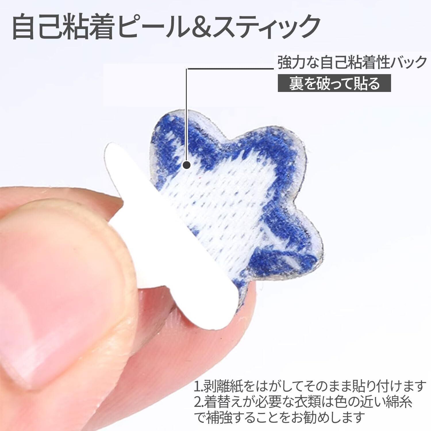 【使用方法】1.裏のフィルムをはがして直接貼る;2.着替えが必要な服は、アイロンや縫製で補強する必要がある;3.お母さんに手伝ってもらう;4.刺繍ワッペンを服に貼る。