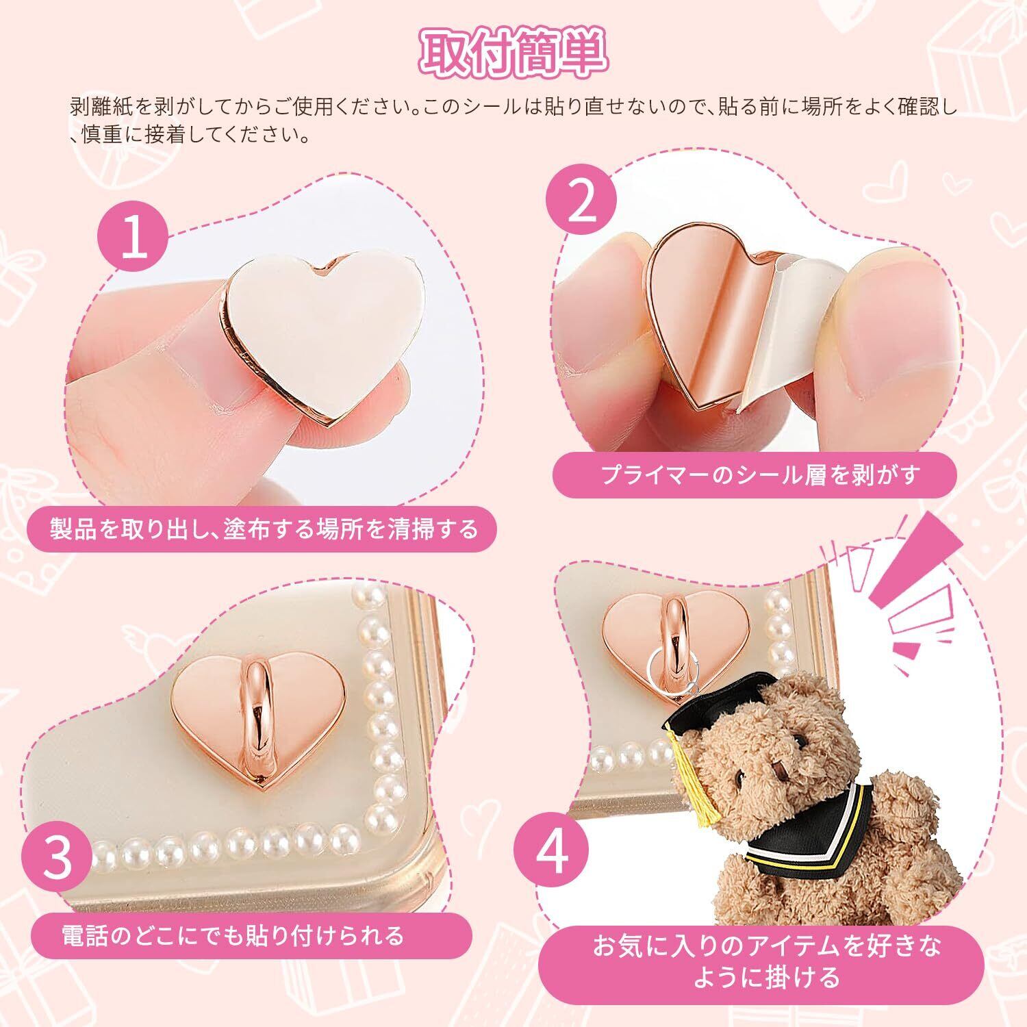 キーリングハンガー スマホ スマホストラップ リング 2個入り ハート型/リボン型 シルバー/ローズゴールド 貼り付け式 DIYアクセサリーパーツ メタルフック付属 スマホケース装飾用
