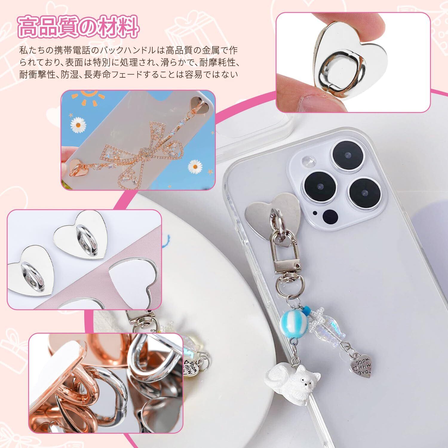 キーリングハンガー スマホ スマホストラップ リング 2個入り ハート型/リボン型 シルバー/ローズゴールド 貼り付け式 DIYアクセサリーパーツ メタルフック付属 スマホケース装飾用 (ハート型シルバー)
