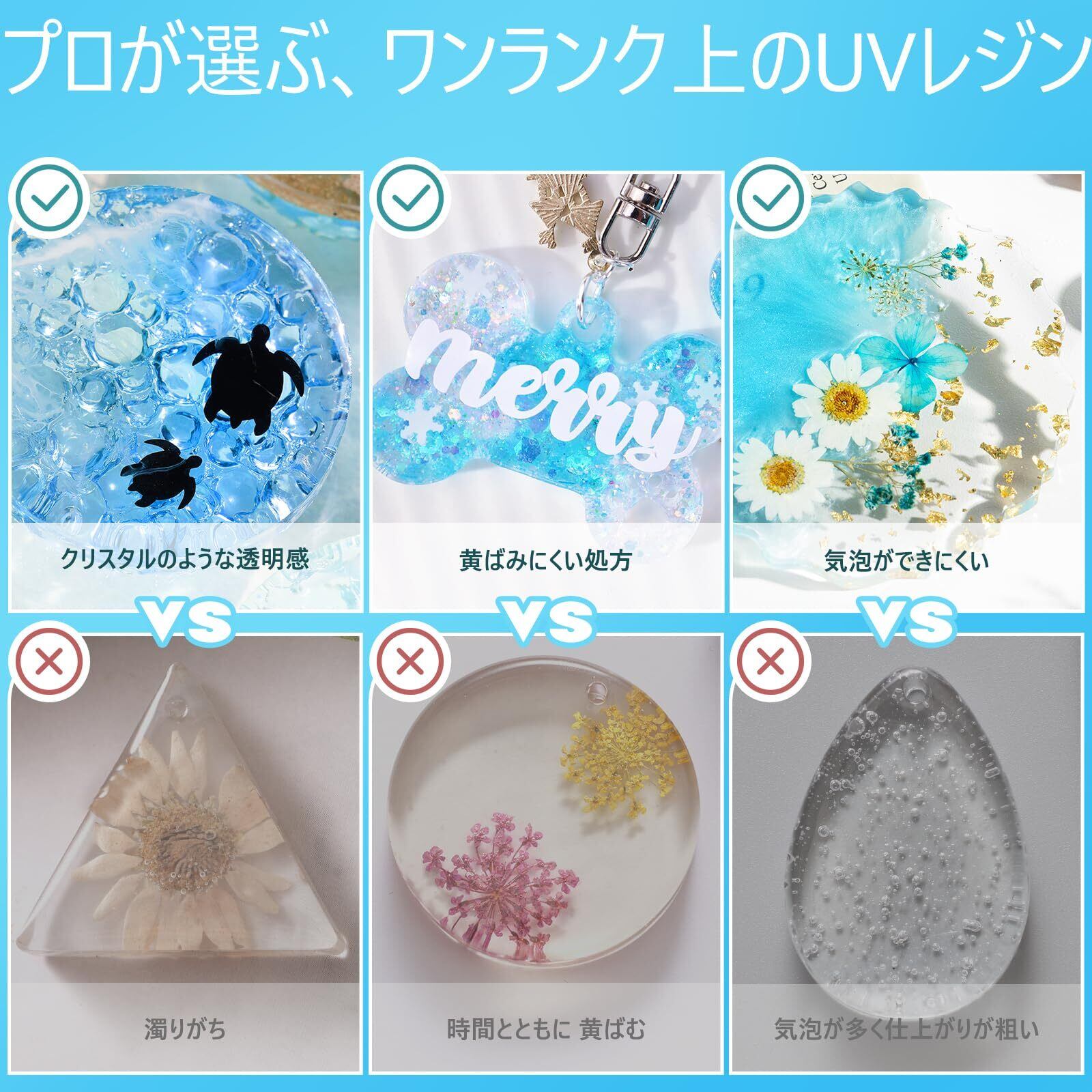 ️【UV・LED・太陽光対応&驚きの速硬化】UVライト・LEDライトはもちろん、太陽光でもしっかり硬化できる万能タイプの レジン液 です!1~2分の速硬化で作業効率アップします。さらに、低温環境でも硬化しやすく、季節を問わず安定した仕上がりが可能です。ベタつきも少なく、すぐに次の工程へ移れるからストレスフリー!初心者の方でも簡単&キレイに仕上がるので、レジンクラフトの入門にも最適です。