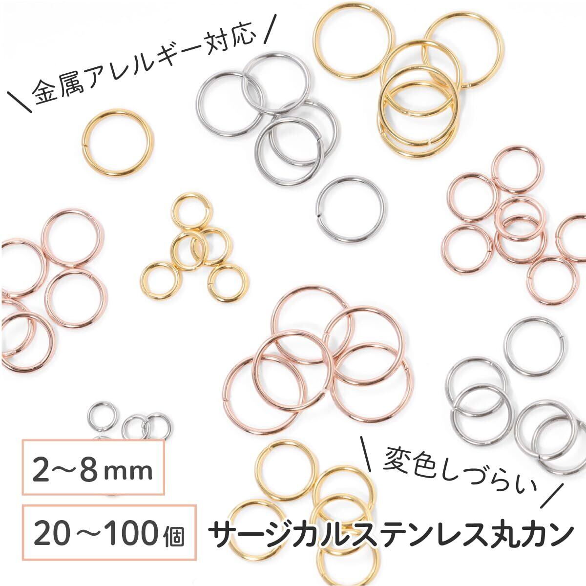 丸カン シルバー 2mm 約100個前後 ハンドメイド 手芸 パーツ 金属アレルギー対策 アクセサリーパーツ