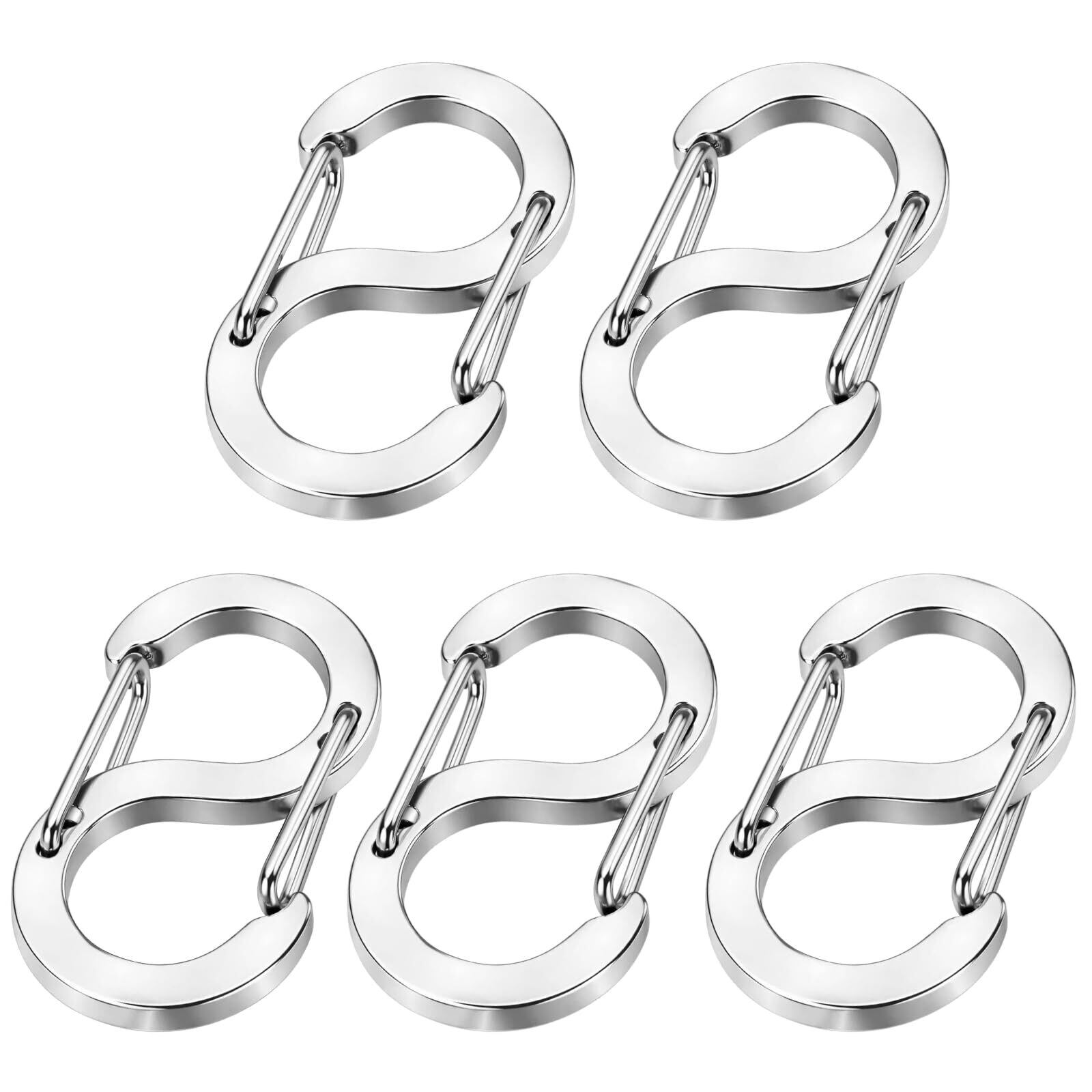 【ばね式S字型で扱いやすい】スプリング式で押すだけの簡単開閉。S字(8字)形状のダブルフック仕様で、ナスカンとして接続・取り外しがしやすく、小型でも操作性に配慮した設計です。
