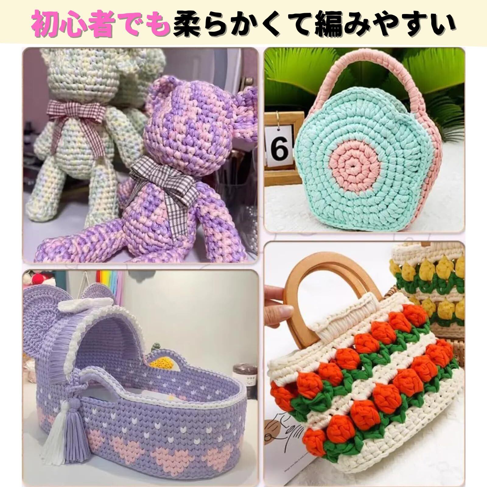 【柔らかくて編みやすい!Tシャツヤーンで始めるクラフトライフ】「可愛いバッグを作りたいけど、毛糸のチクチク感が気になる…」そんな方におすすめなのがティーシャツヤーンです。ポリエステル製で柔らかく、光沢もあり編み心地抜群。夏でも快適に使えて、洗濯にも強いので長く楽しめます。まずはお気に入りの小物から始めて、手作りの喜びを感じてください。