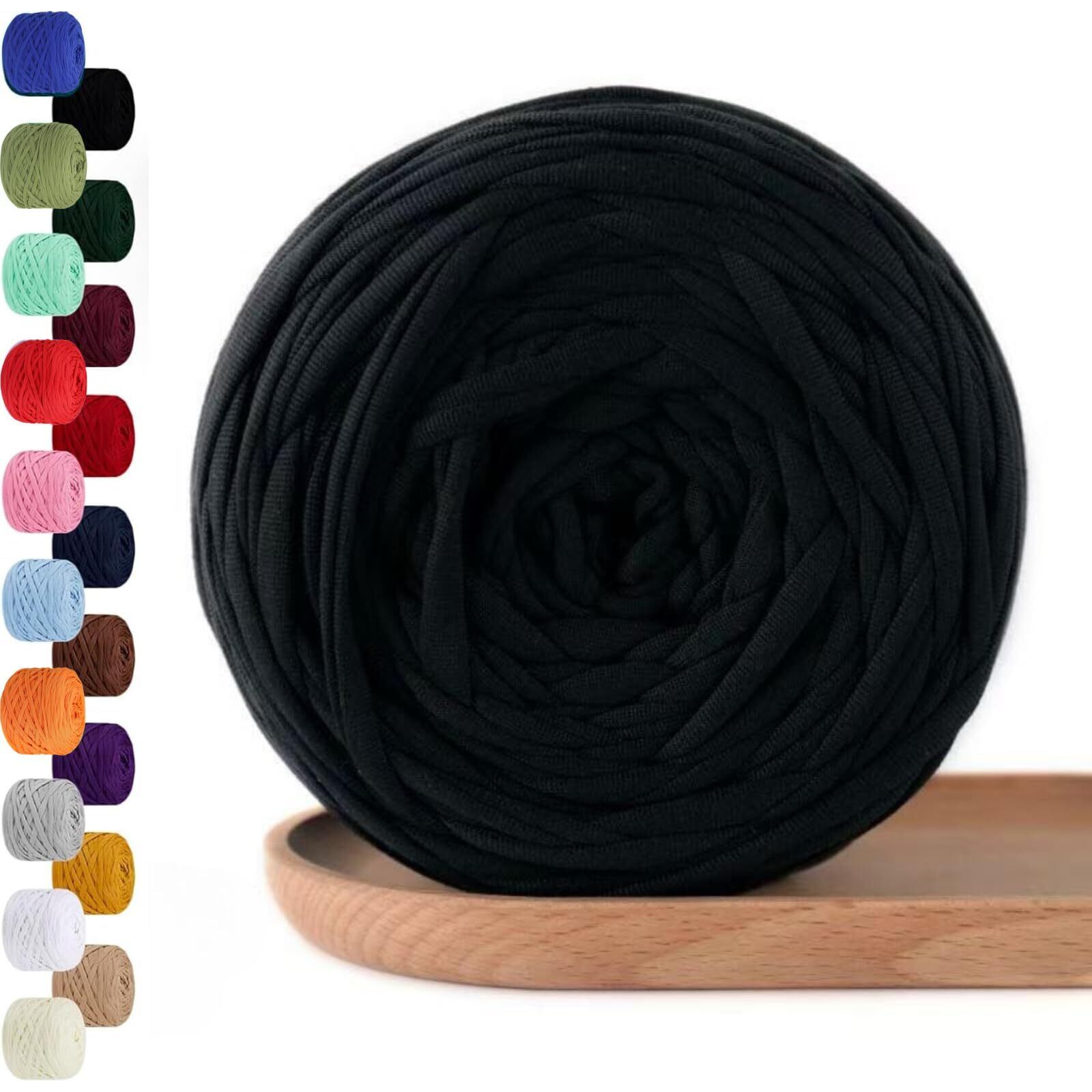 ATAK Tシャツヤーン 100m ティーシャツヤーン ズパゲッティ ファブリックヤーン (08: ブラック)