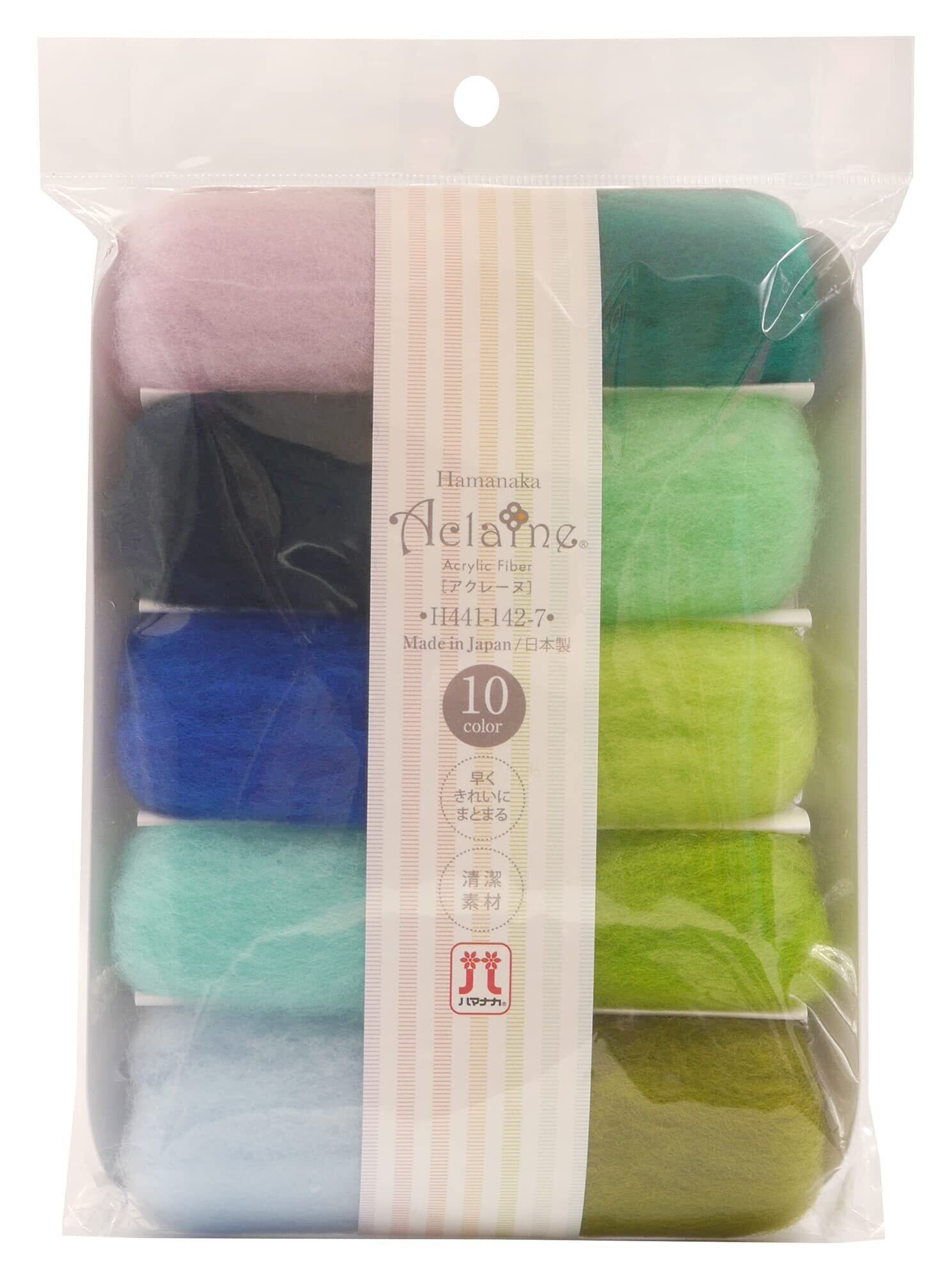 ハマナカ 羊毛フェルト アクレーヌ 10色セット 各色約2g入り 青系・緑系 H441-142-7