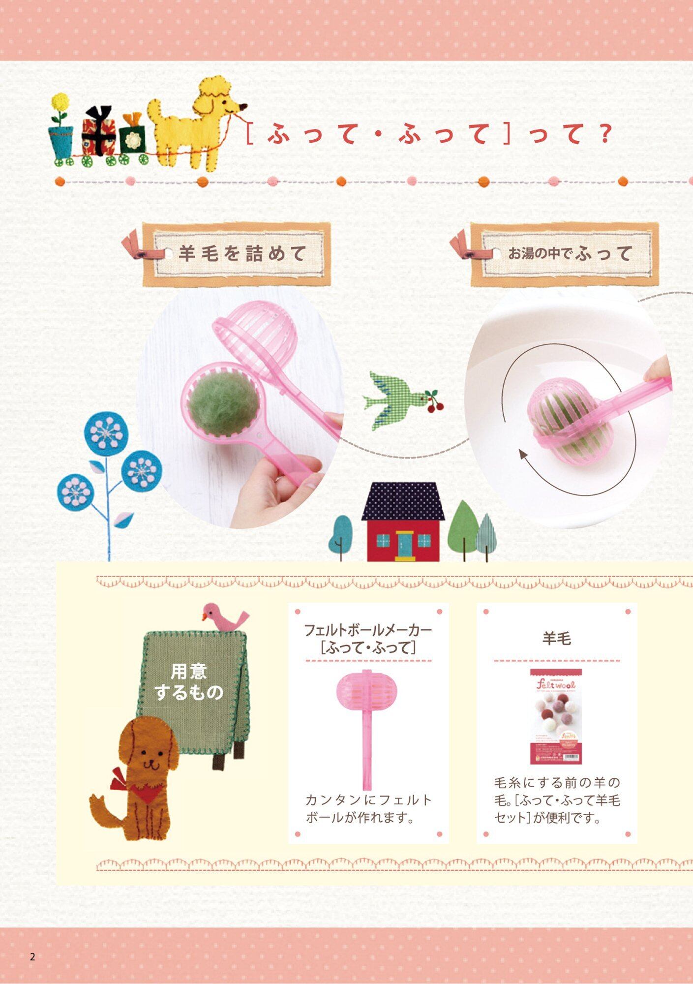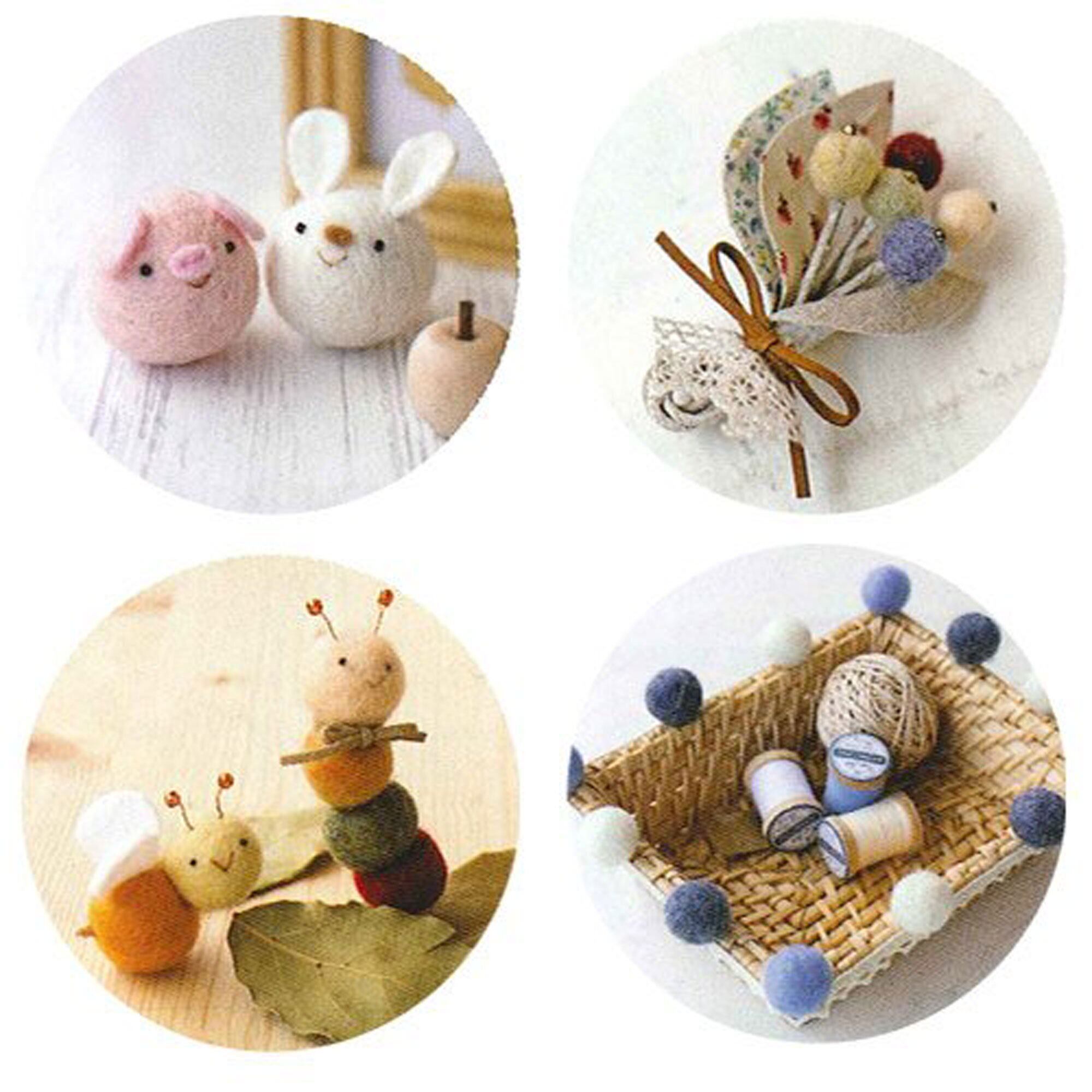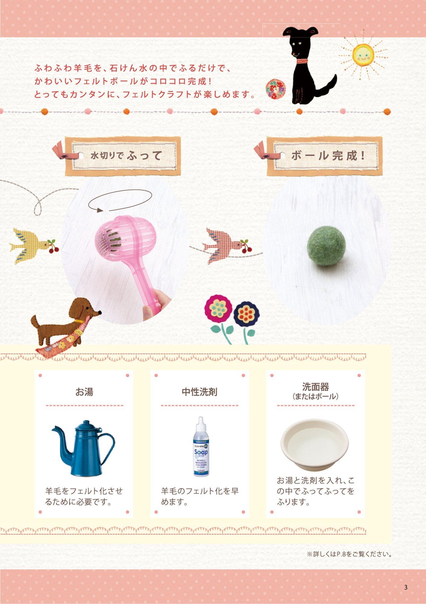 ふわふわ羊毛を、石鹸水の中でふるだけで、かわいいフェルトボールがコロコロ完成!とってもカンタンに、フェルトクラフトが楽しめる。