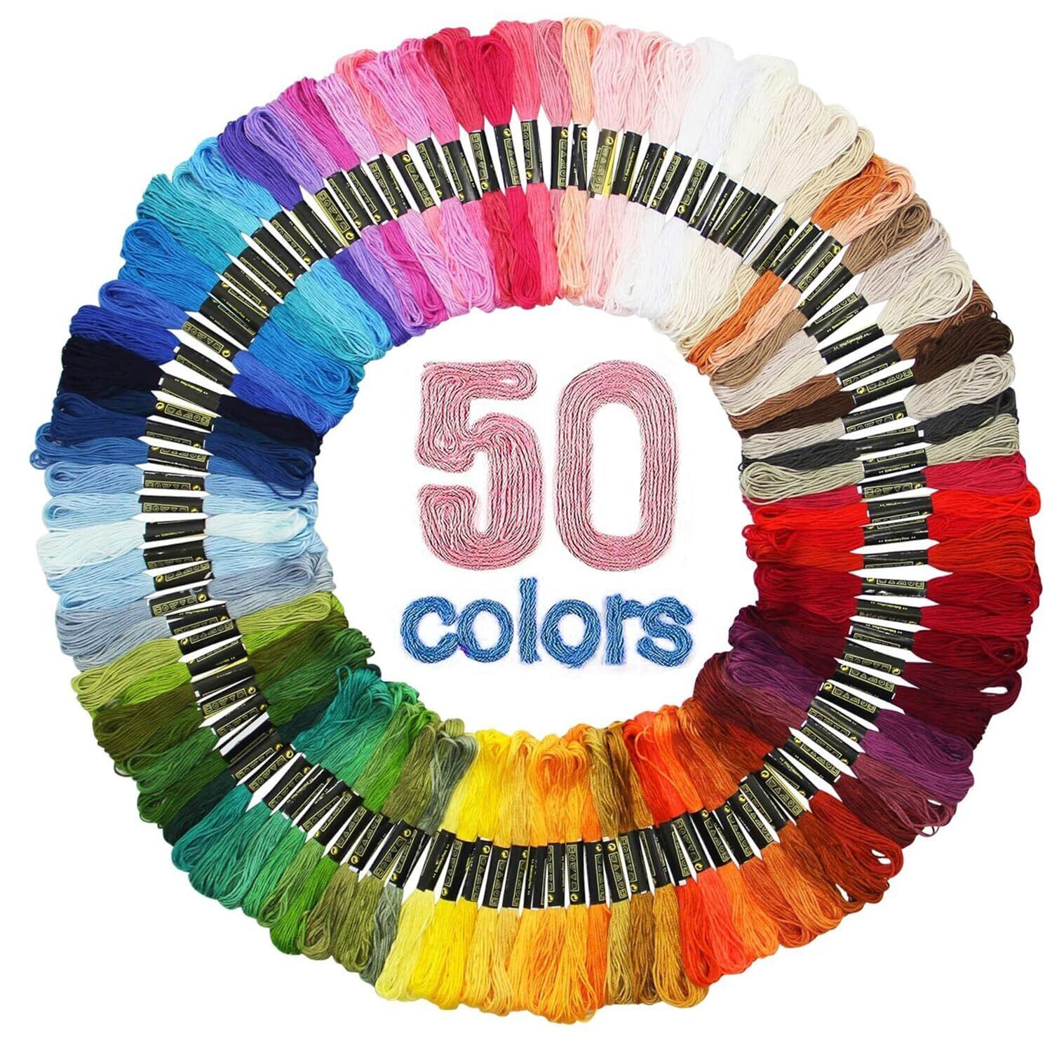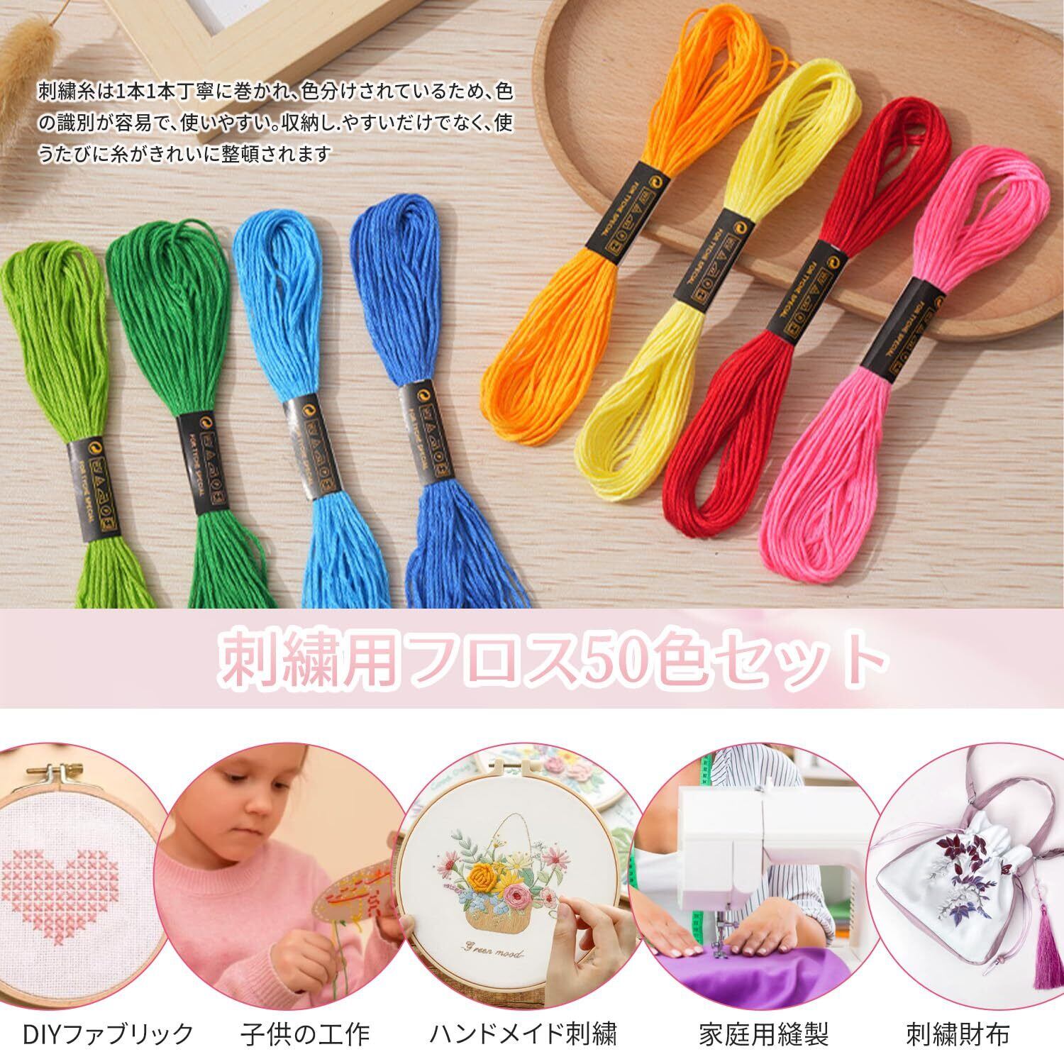 刺繍糸 刺繍糸 セット 50色の組み合わせ 長8m 6本綴 多用途 カラーバリエーション豊富 明るい色とくすみカラー 初心者からプロまで 耐久性 色褪せ防止 手芸 刺しゅう クロスステッチ ミサンガ 刺し子 家庭用縫い物 手作りDIY
