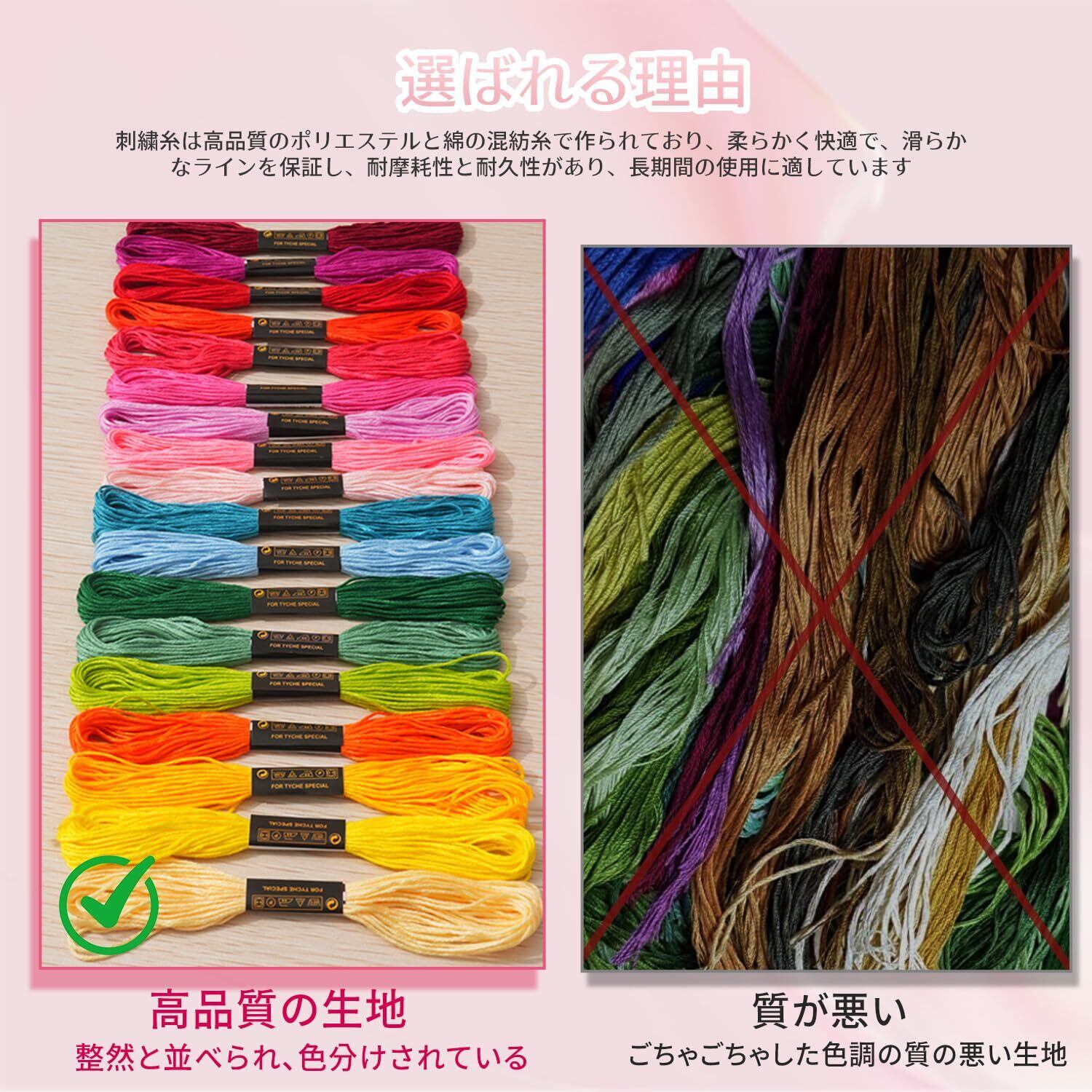 ✨【プロ仕様の糸品質】高品質のポリエステル綿混紡糸を採用。独自の撚り技術で毛羽立ちを抑え、スムーズな引き味を実現。優れた色持ち性で、洗濯や日光にも強く、作品を長く美しく保ちます。