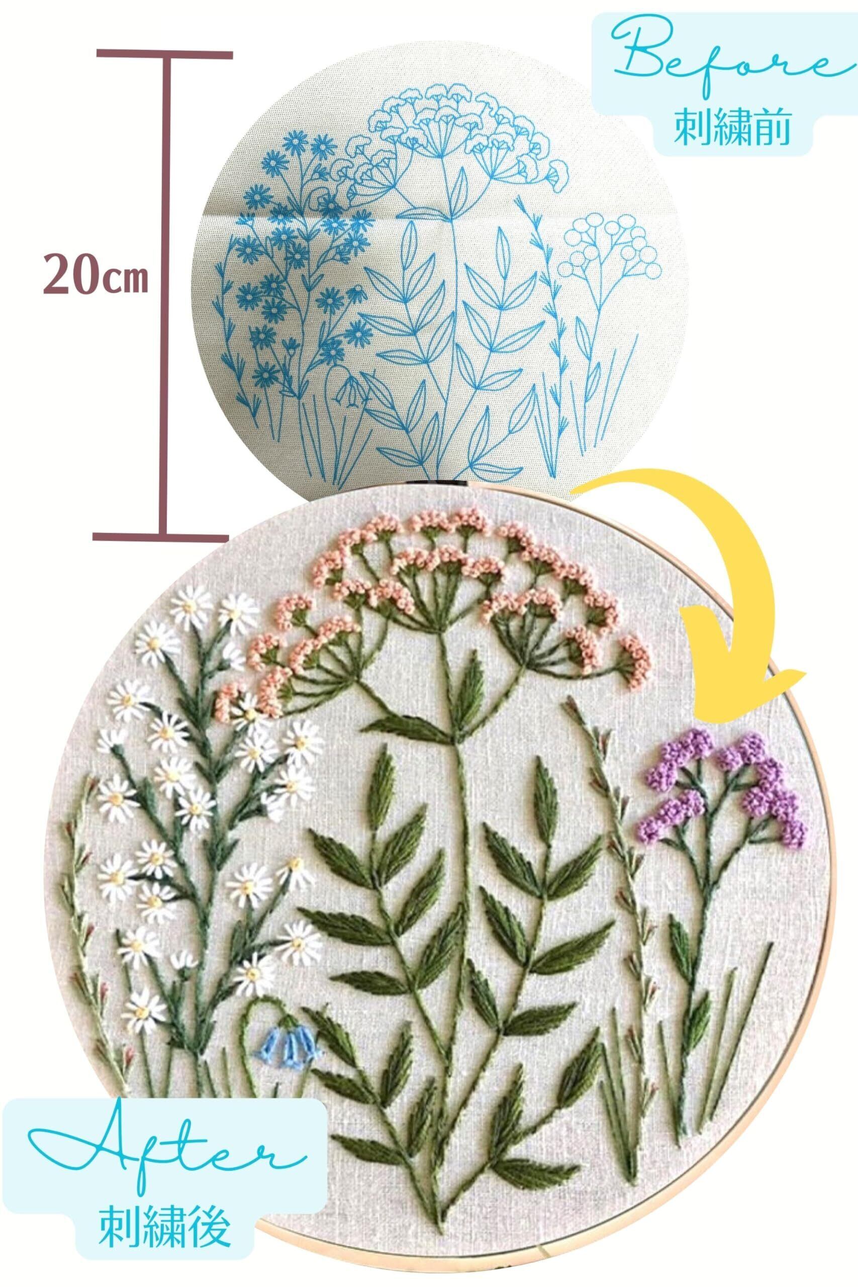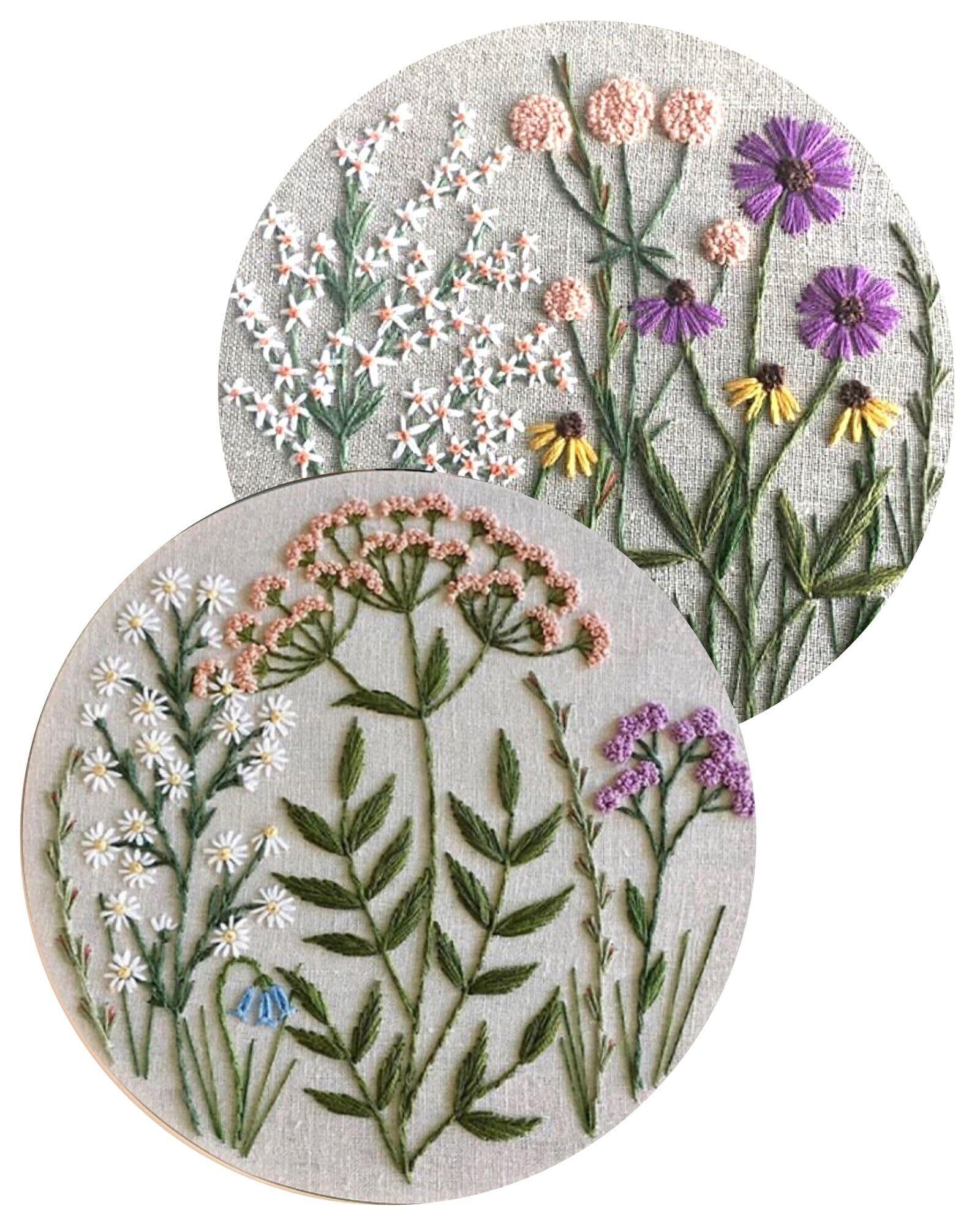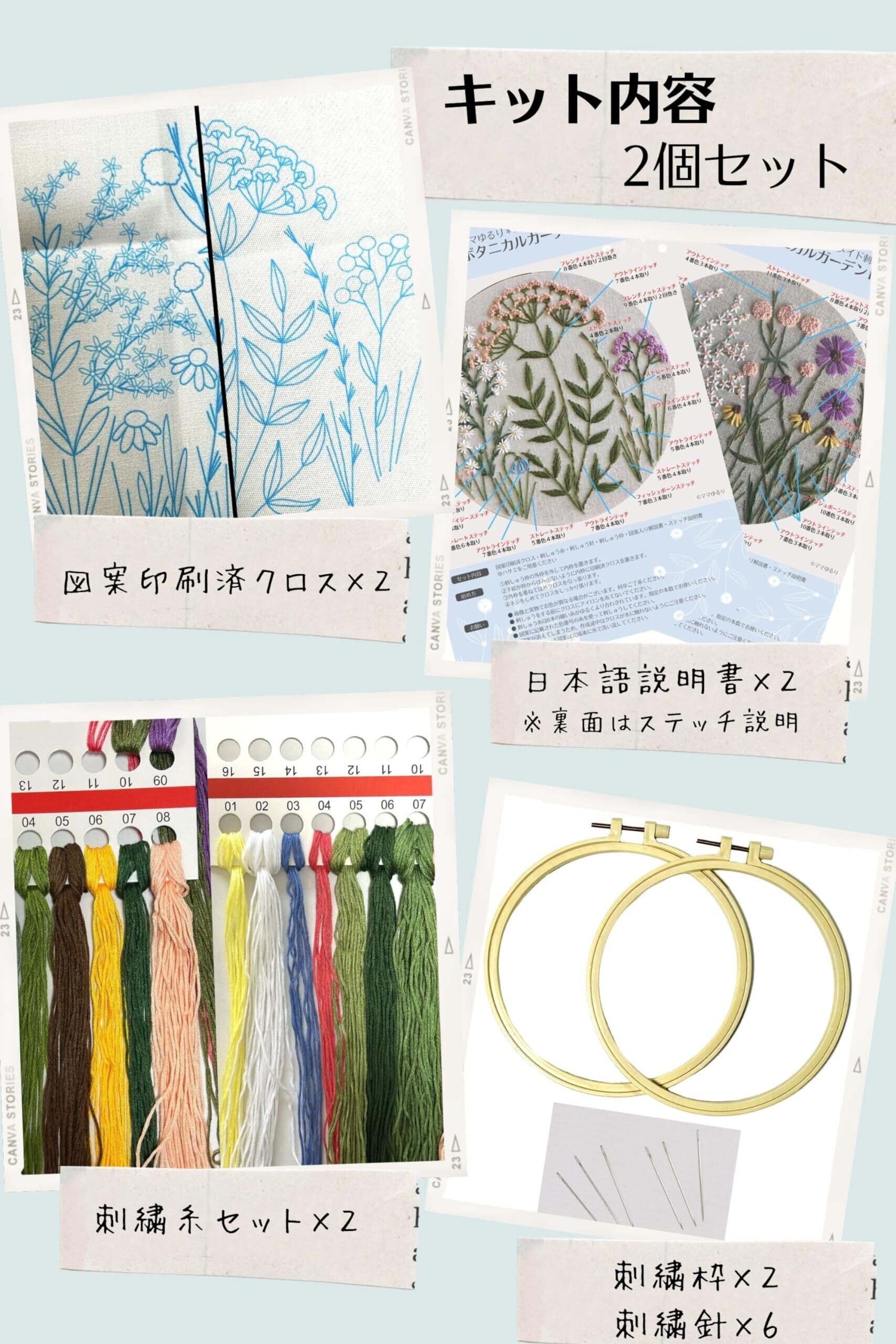 フランス刺繍キット2個セット 日本語取り扱い説明書 ステッチ説明付 刺繍糸 刺繍枠 図案クロス付 (ボタニカルガーデンⅡ)