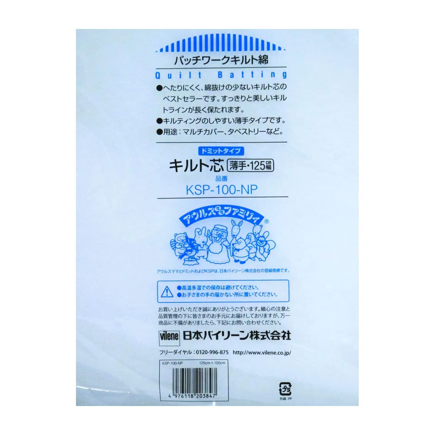バイリーン アウルスママ ドミットタイプ キルト芯 薄手 125cm×1.5M 白 KSP-100-NP