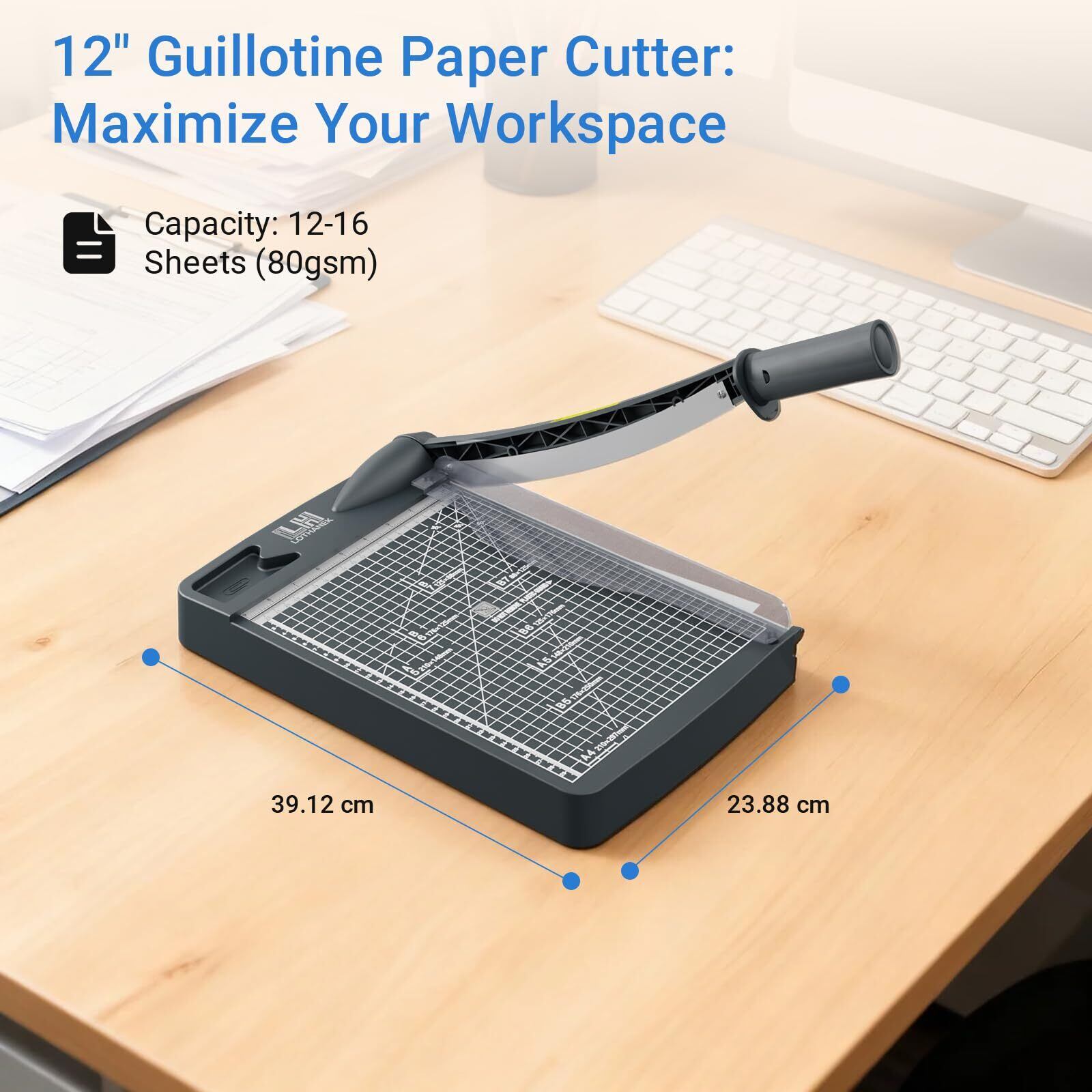 12インチ裁断機 ペーパーカッター業務用 グィヨチンカッター 重 duty 12-16シート容量 裁断機 裁断紙 厚紙 写真 スクラップブッキング オフィス 教室 スタジオ向け (灰色)
