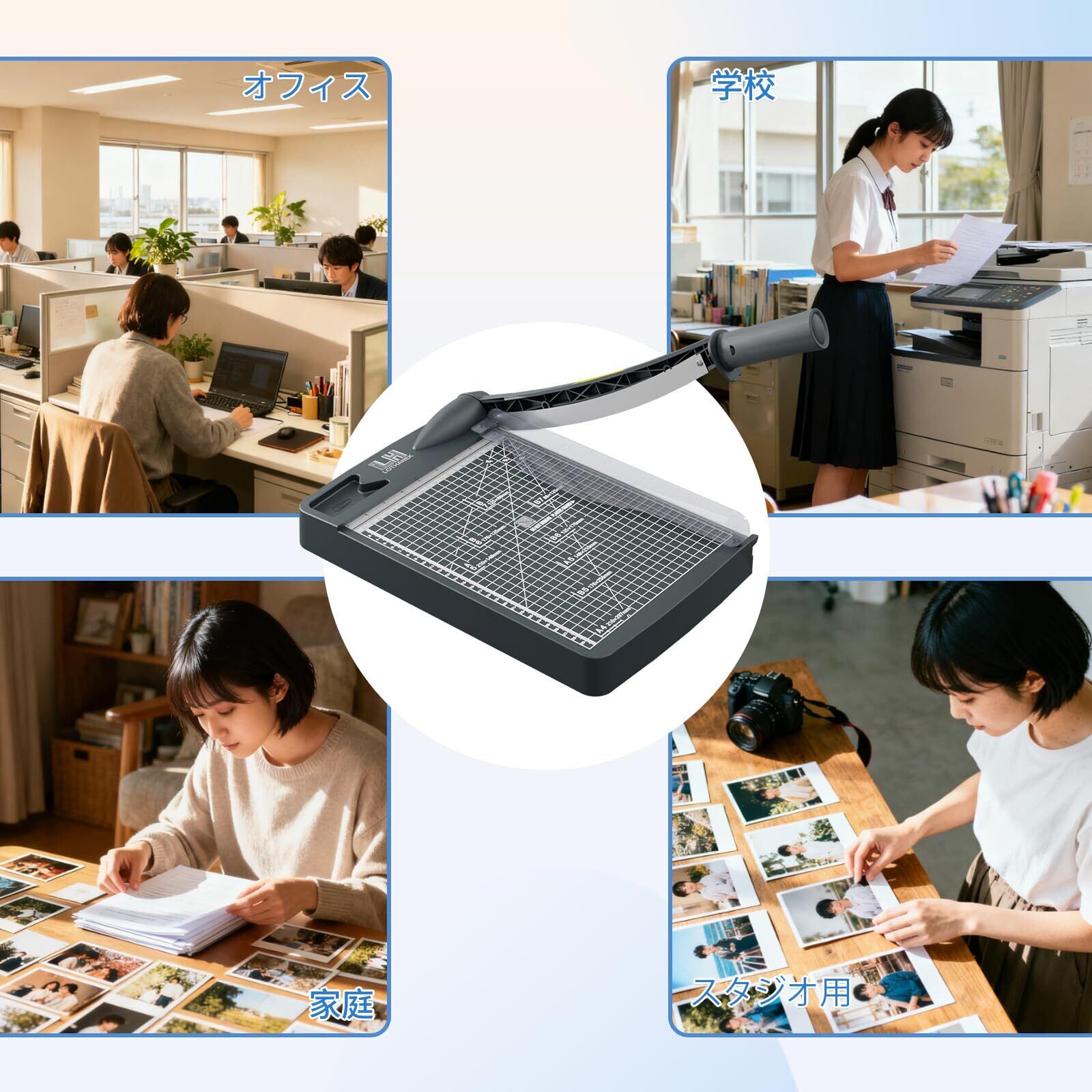 最大12枚同時裁断: 80g/m²の紙を最大12枚まで簡単に裁断できます。12インチ(約30cm)のカット長はA4、A5、B5、B6など様々なサイズに対応し、家庭、オフィス、学校、クリエイティブスタジオに最適です。