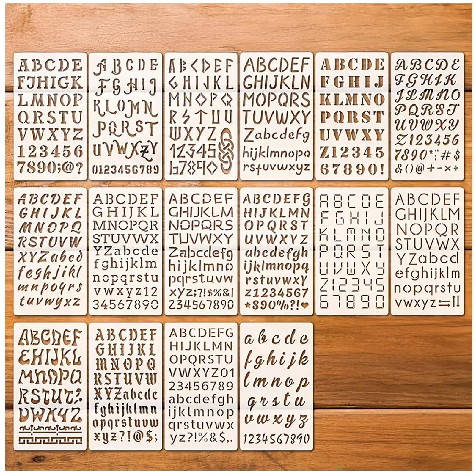 CAWKAY ステンシルシート 描画テンプレート アルファベット DIY 手書きアート 再利用可能 絵画 塗装 手芸 アルバム 手記 数字 (16枚セット)