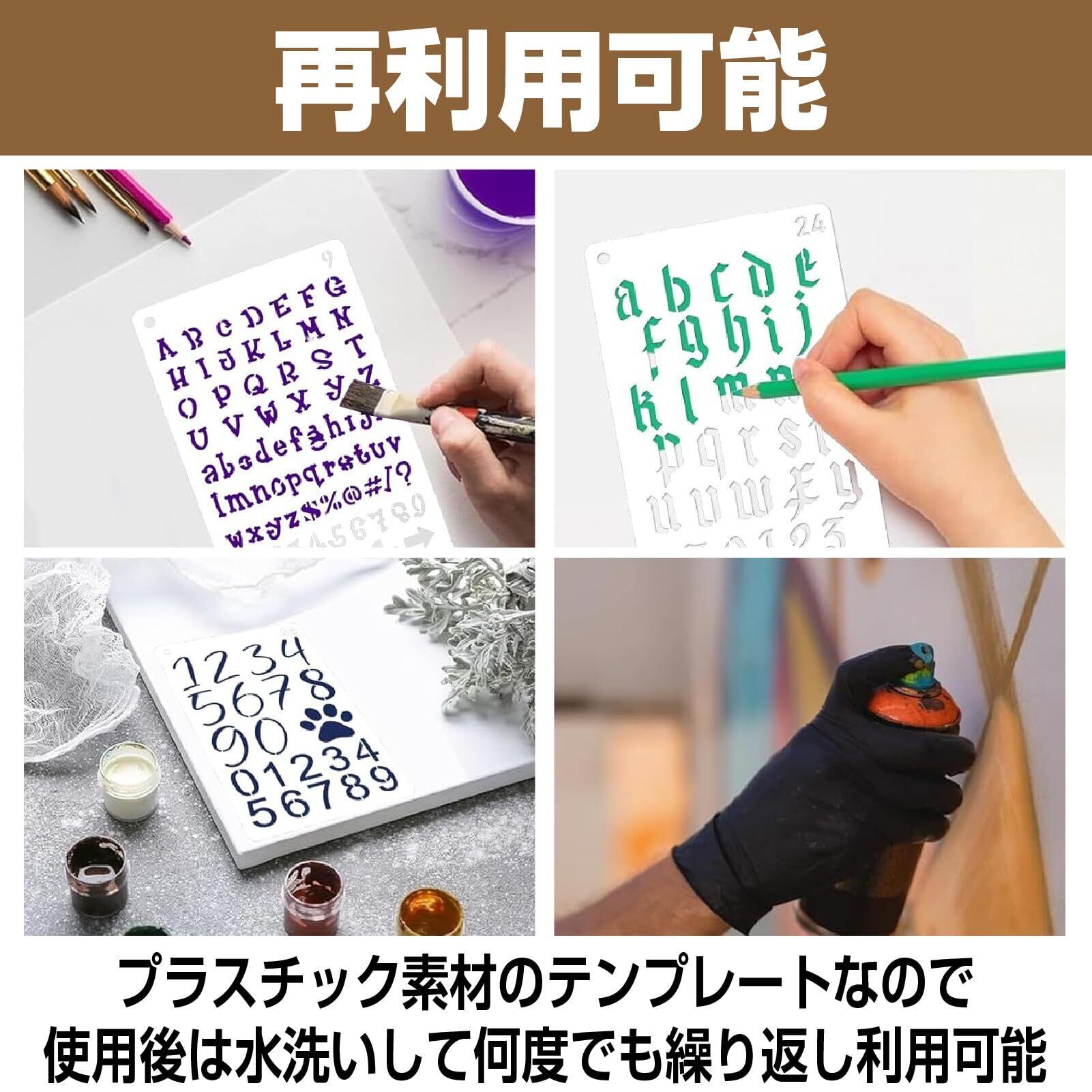 【初心者から上級者まで安心の簡単使用】 塗装面を整え、ステンシルシートを固定して塗るだけのシンプルな手順で、誰でもきれいな文字表現が可能です。にじみにくく、くっきりとした仕上がりを実現できるため、DIY初心者やお子さまの工作、学校の課題制作にも安心してお使いいただけます。