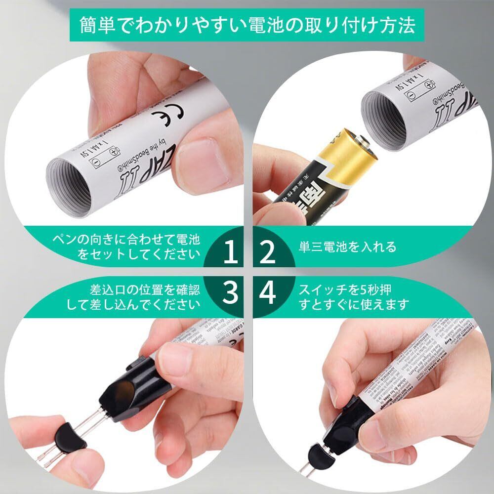 【電池式ヒートペン】 単3アルカリ電池1本(別売)で動作するワイヤレス電熱ペン。約3〜5秒でペン先が280度まで加熱し、素早く作業可能です。