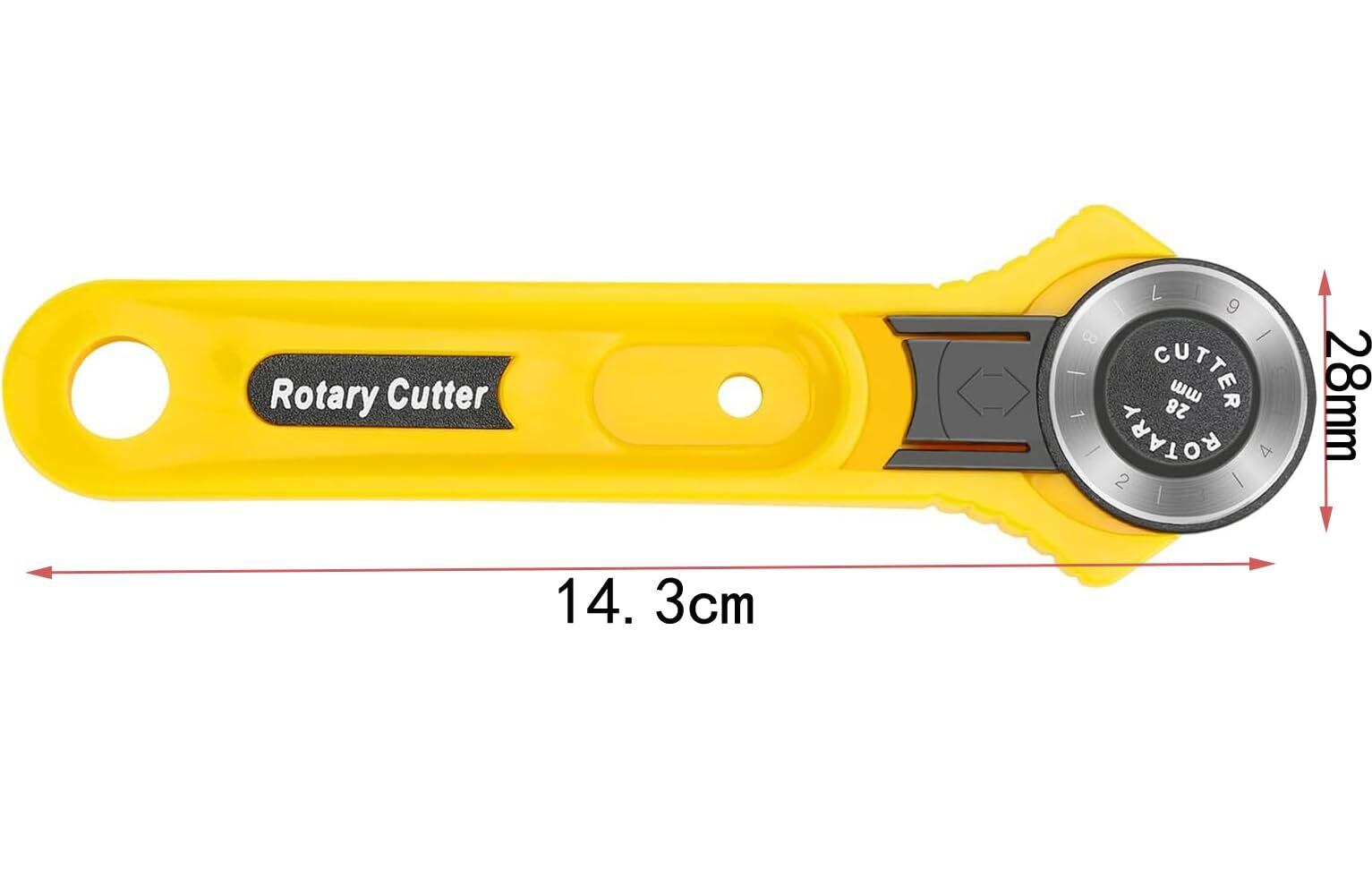 【仕様】サイズ:全長14.3cm;丸刃の直径:28㎜;コンパクトなサイズに丸刃で、細かいカッティングが可能目盛り付き。