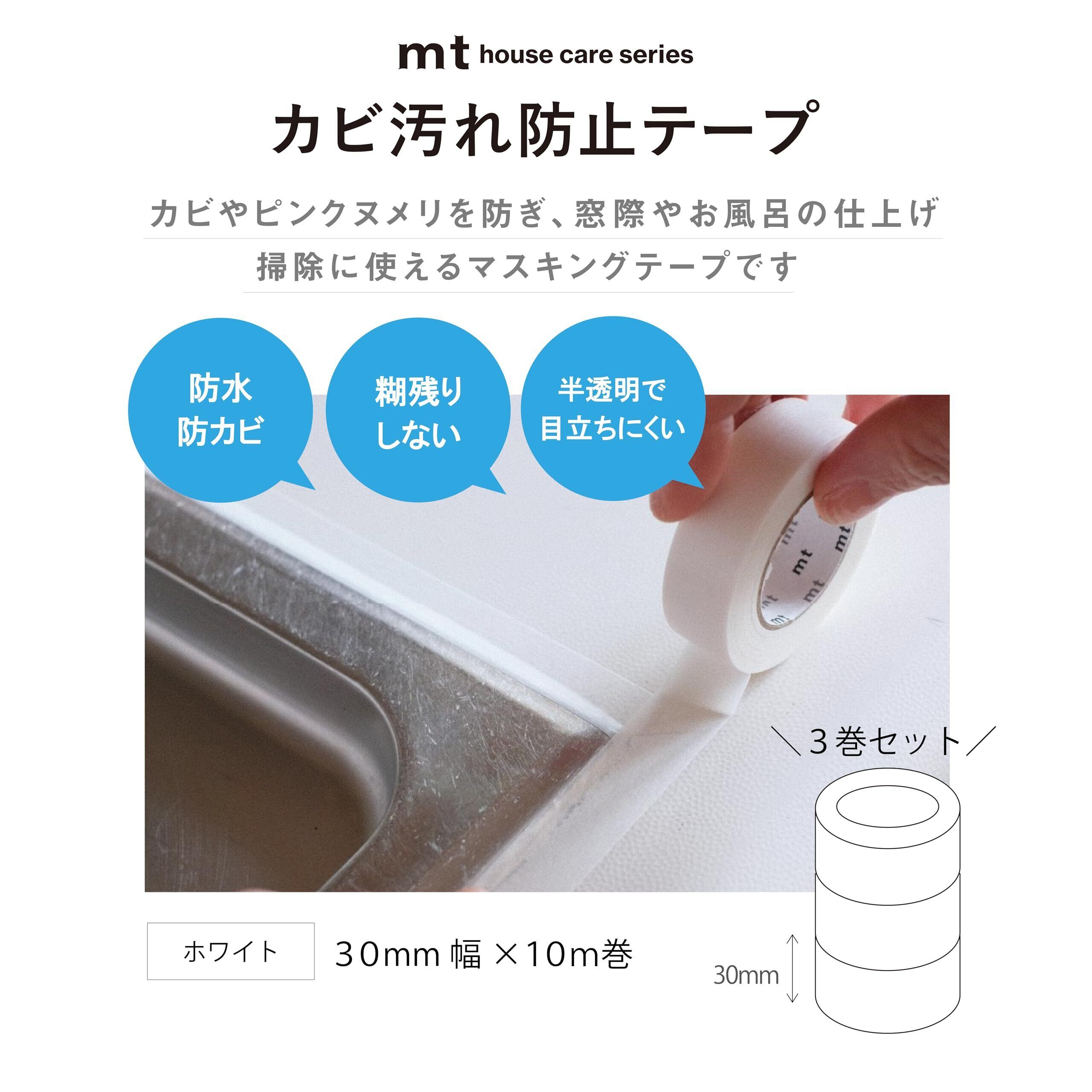 mt カビ汚れ防止テープ ホワイト (30mm幅 / 3巻パック) 水回り 防カビ マスキングテープ 幅広 (防水/汚れ防止) お風呂 キッチン サッシ カモ井加工紙