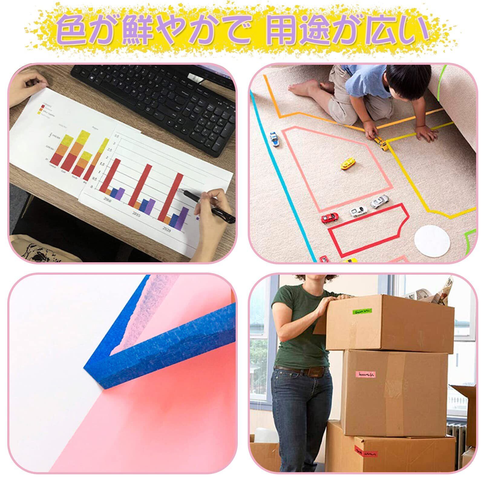 ✨【完璧な接着、簡単取り外し・貼り直し】他のマスキングテープに比べて、こちらのカラーテープは完璧な粘着力を持っています。粘着残留物や表面へのダメージがなく、付着や剝離が容易です。強力なマスキングテープは、プラスチック、ガラス、紙、金属、セラミック、キャンバス、ホワイトボード、黒板、壁、床などのきれいな表面に簡単に貼り付けることができます。