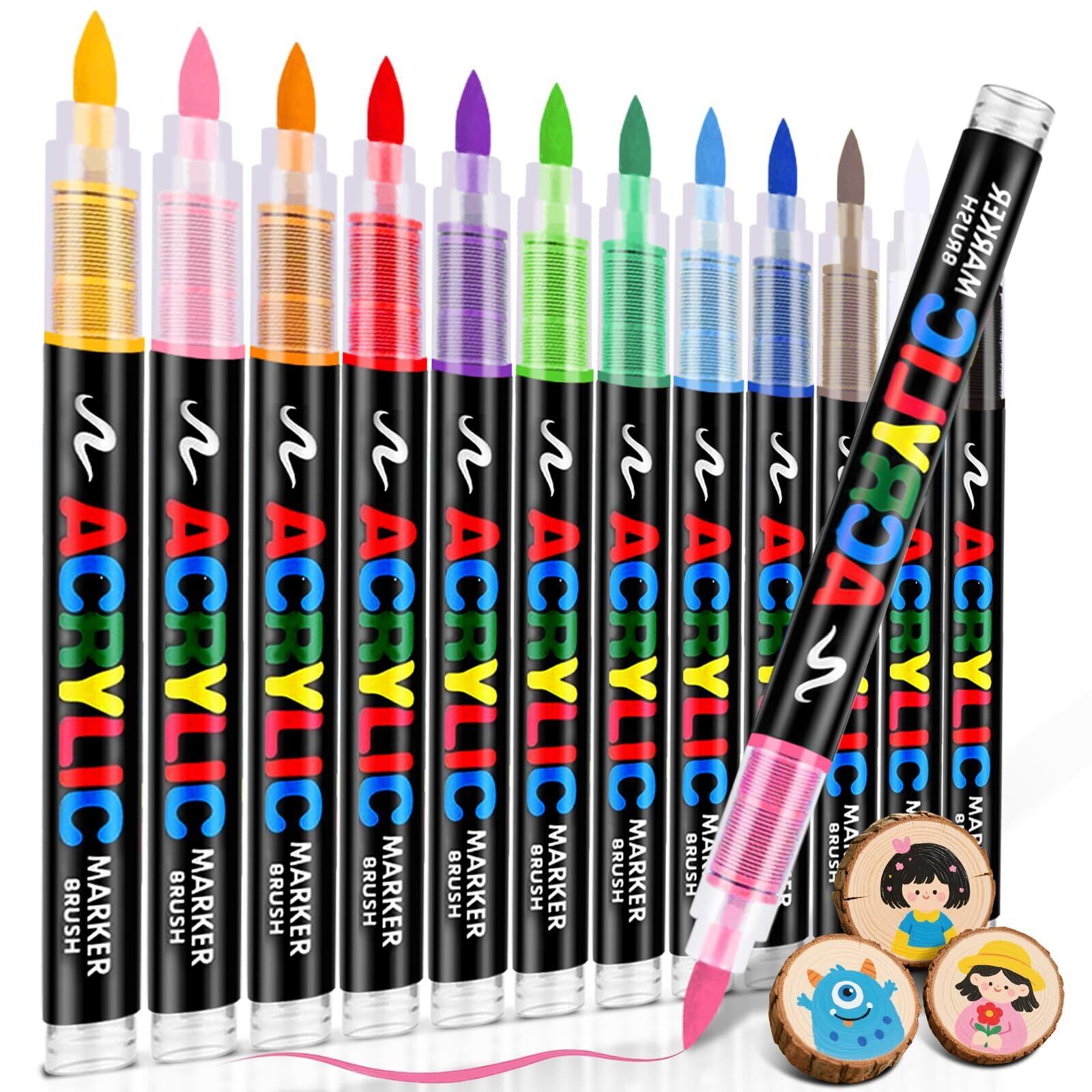 アクリルマーカーペン 12色 直液式 アクリルペン 水性ペン ペイントマーカー ガラス 木材 石 陶器 セラミック の防水アク リル ペイントペン