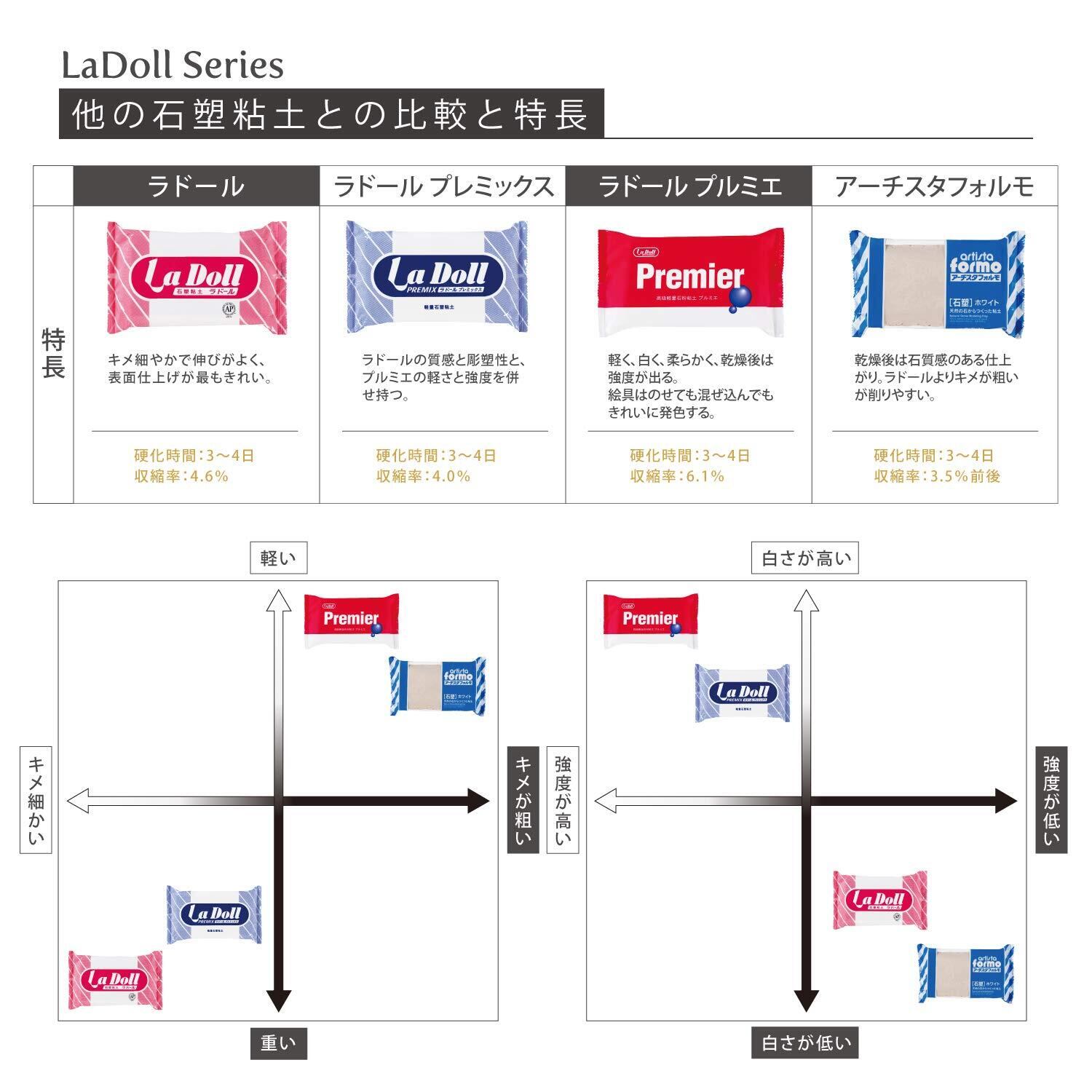 ・「ラドール」の伸びのよさはそのままに、「プルミエ」の軽量で優れた強度を併せ持つ軽量石塑粘土です。