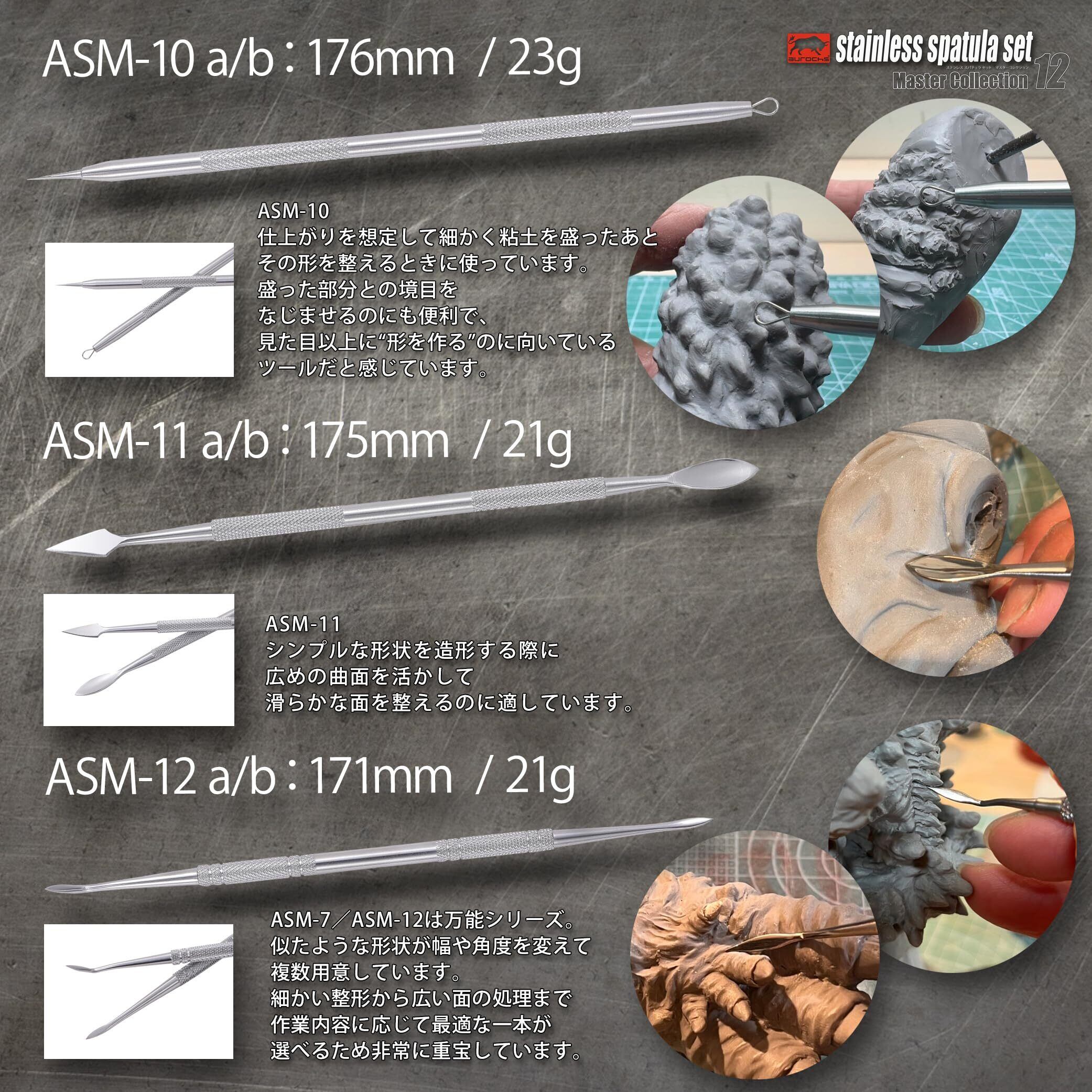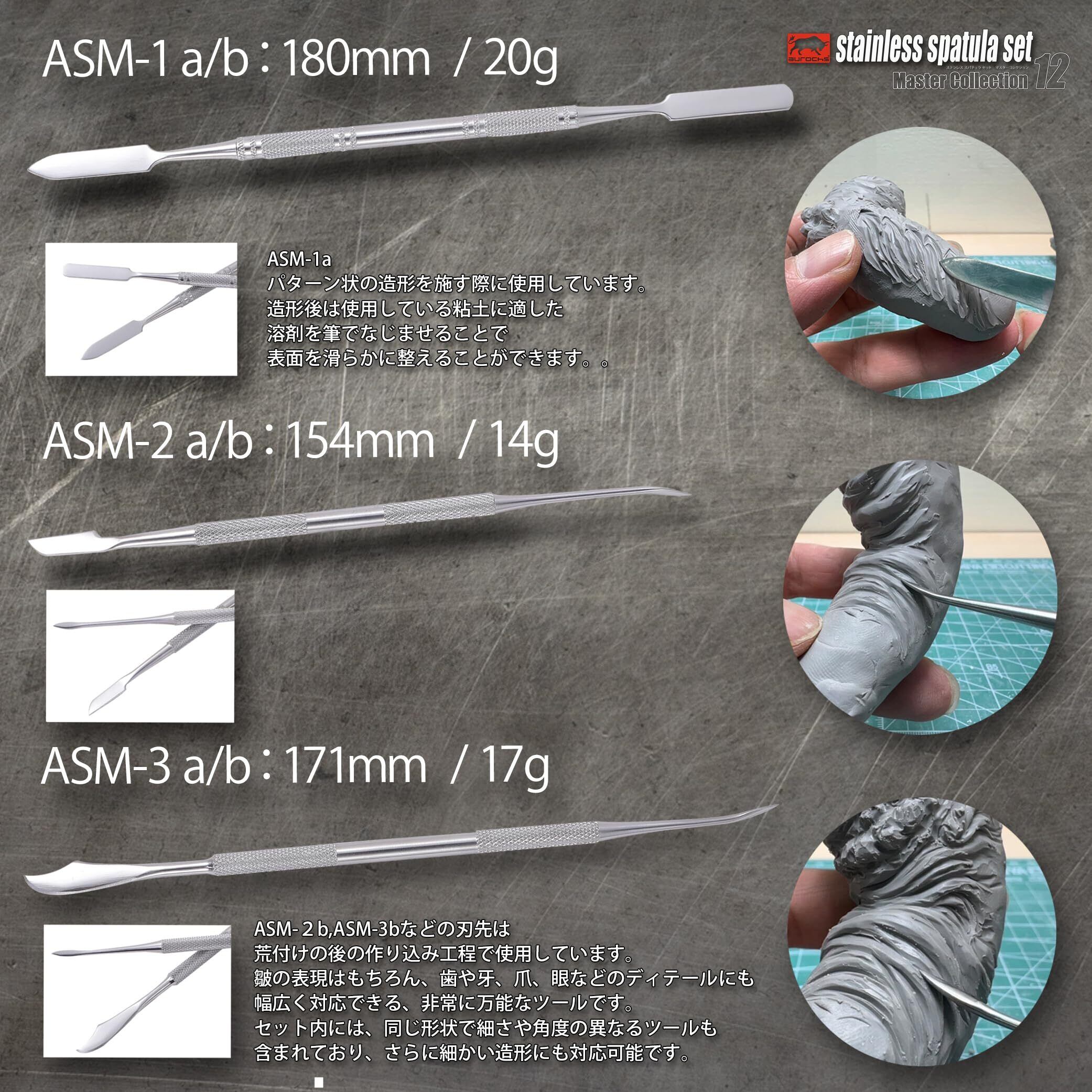 aurochs EZ-tools スパチュラ 造形 ヘラ ステンレス製 ツール 12本セット 専用ケース付き 粘土細工 パテ ヘラ フィギュア スカルピー
