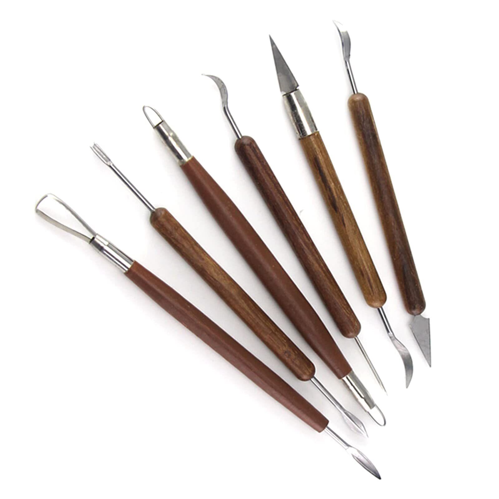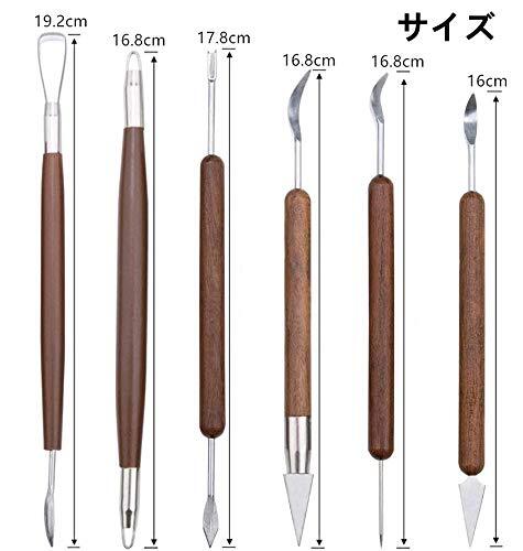 【12種の形状】木製ボディハンドルと二重形状のヘッドを備えた6本セット両端12種の形状で、複数のスタイルから選択して利用できます。この陶芸道具は用途に合わせ様々なツールがありますので、きめ細かい作業が可能になります。