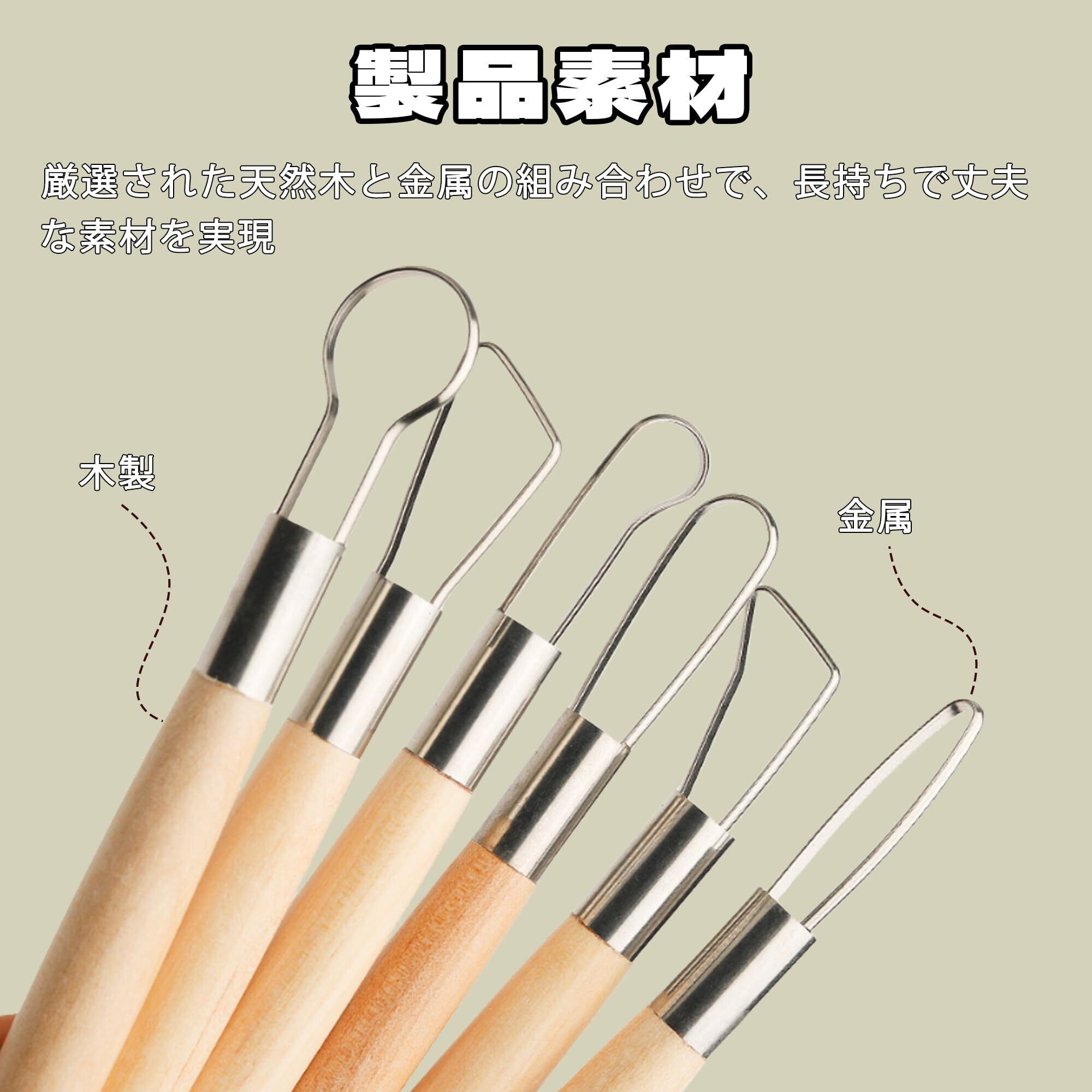 【6点セット】粘土 ヘラには両頭フラットワイヤー工具6本(計12種類の先端)が含まれ、削る、押す、彫る、掻く、抉るなど陶泥/ソフト陶土/粘土造型の全工程に対応。初心者からプロの職人まで幅広くご利用いただけます。