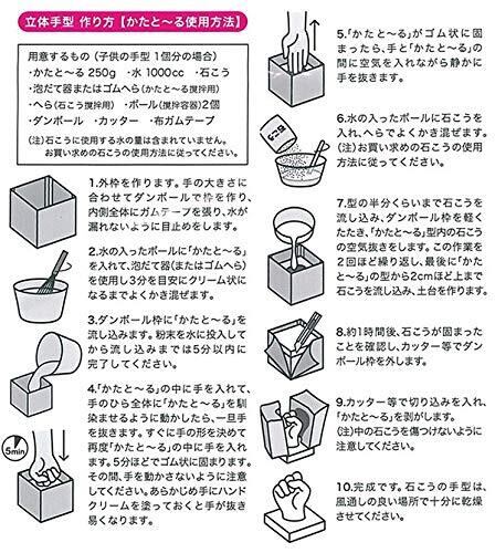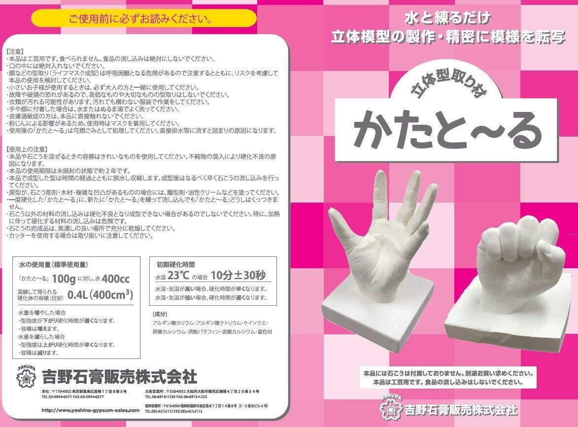 水だけで簡単に手足や顔の型を取ることができます。 注型材として石こうを使うのに便利な印象材です。 水で練ると水分で硬化します。 手足や顔の型を取るのに最適です。 ※商品に石膏は入っておりません。別途ご用意ください。 注意:使い切りタイプとなります。本品で成型した型は時間の経過とともに脱水し収縮します。