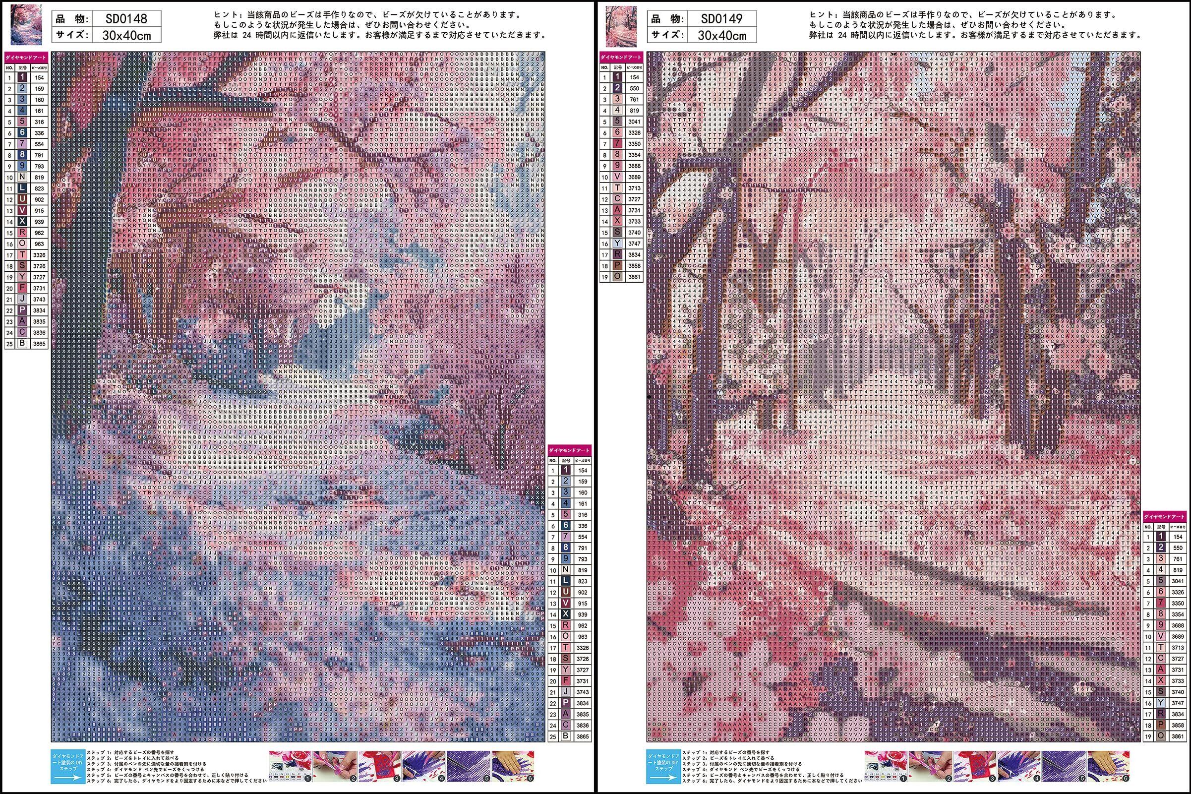 【5 Dダイヤモンドアート キット】桜の林 2個セット 四角いビーズ ダイヤモンドアートには必要なすべてのツールが付属しています。高精細キャンバスx2枚、ダイヤモンドペンx2本、粘土糊x2個(2x2cm)、ビーズトレイx2個、カラフルな四角いビーズx2 を含むる。ダイヤモンド スクエア ビーズの不足を避けるために、ビーズの数を30%増やします。