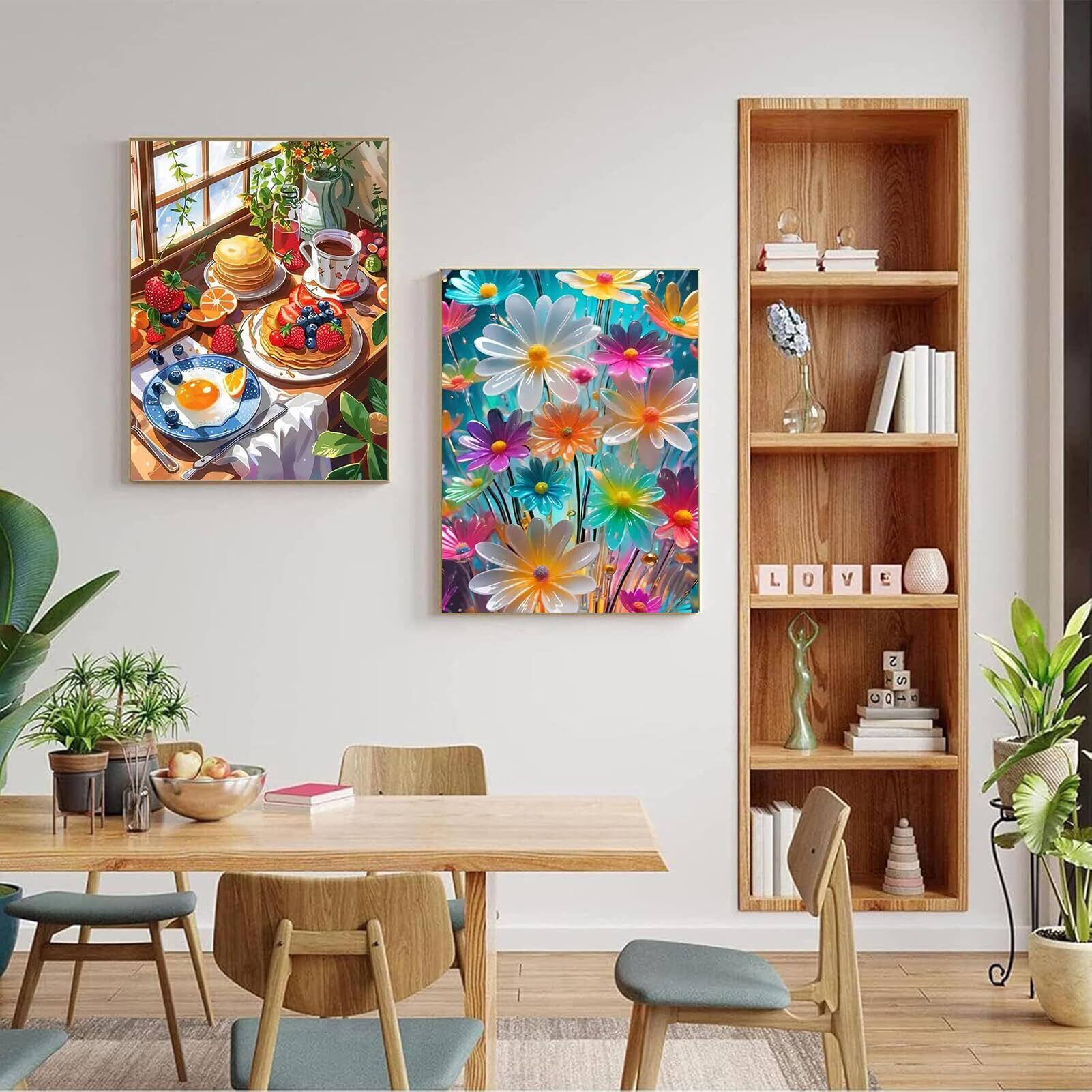 Amyaker ダイヤモンドアート キット 丸いビーズ 全面 2個セット ダイアモンドビーズ絵画キット DIY 手作り絵画 モザイクアート 5D モザイクアート ダイヤモンド塗装 全面貼り付けタイプ 30x40cm グルメ 花