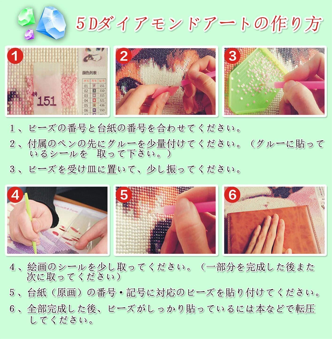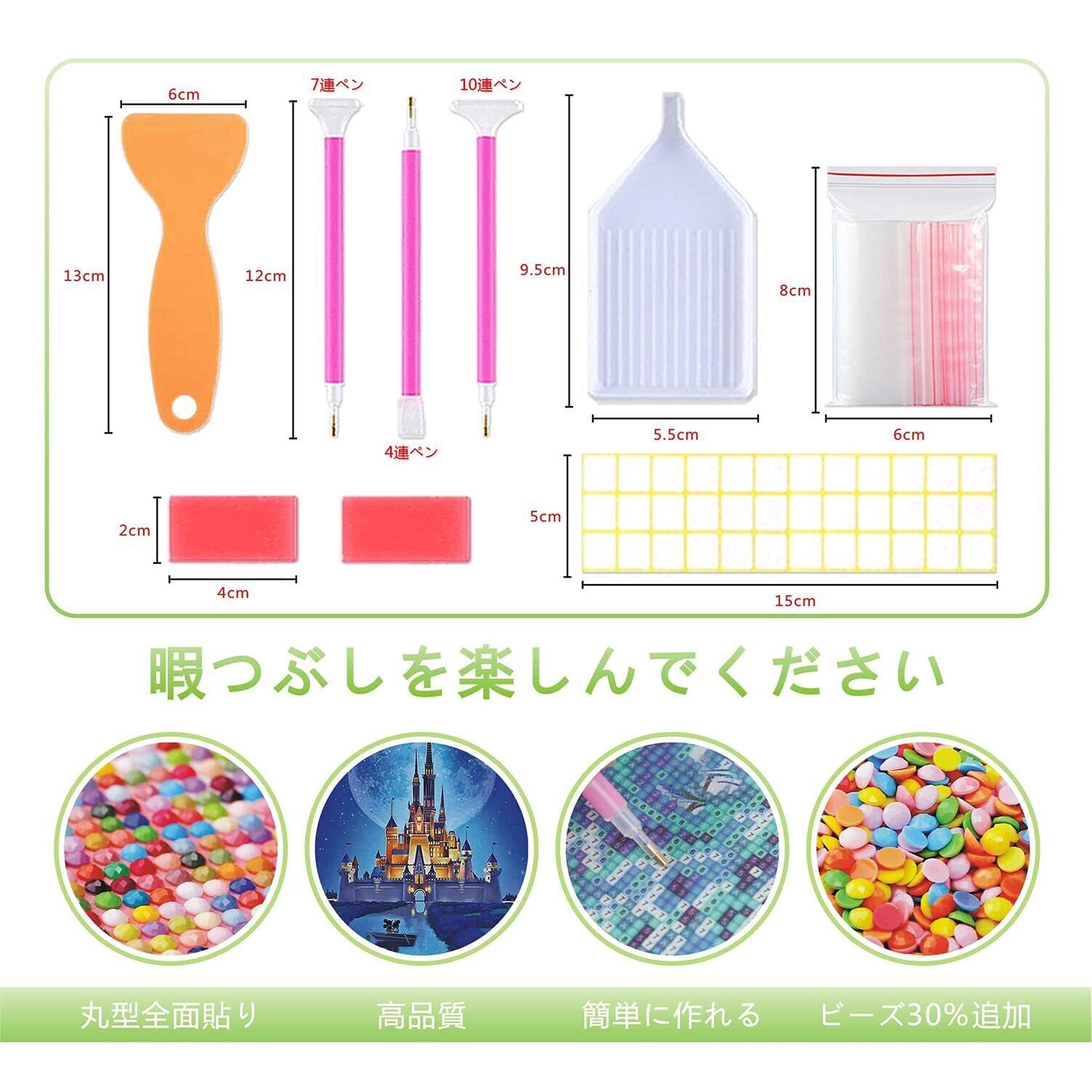 【パッケージ内容】:1枚セットの5Dダイヤモンドアート、1枚のラベルステッカー(30点)、2個の粘土糊、3本のダイヤモンドペン、1個のビーズトレイ、1個の調整板、30枚ビーズ収納バッグ。(ダイヤモンドビーズの不足を避けるために、ビーズの数を30%増やしました。)