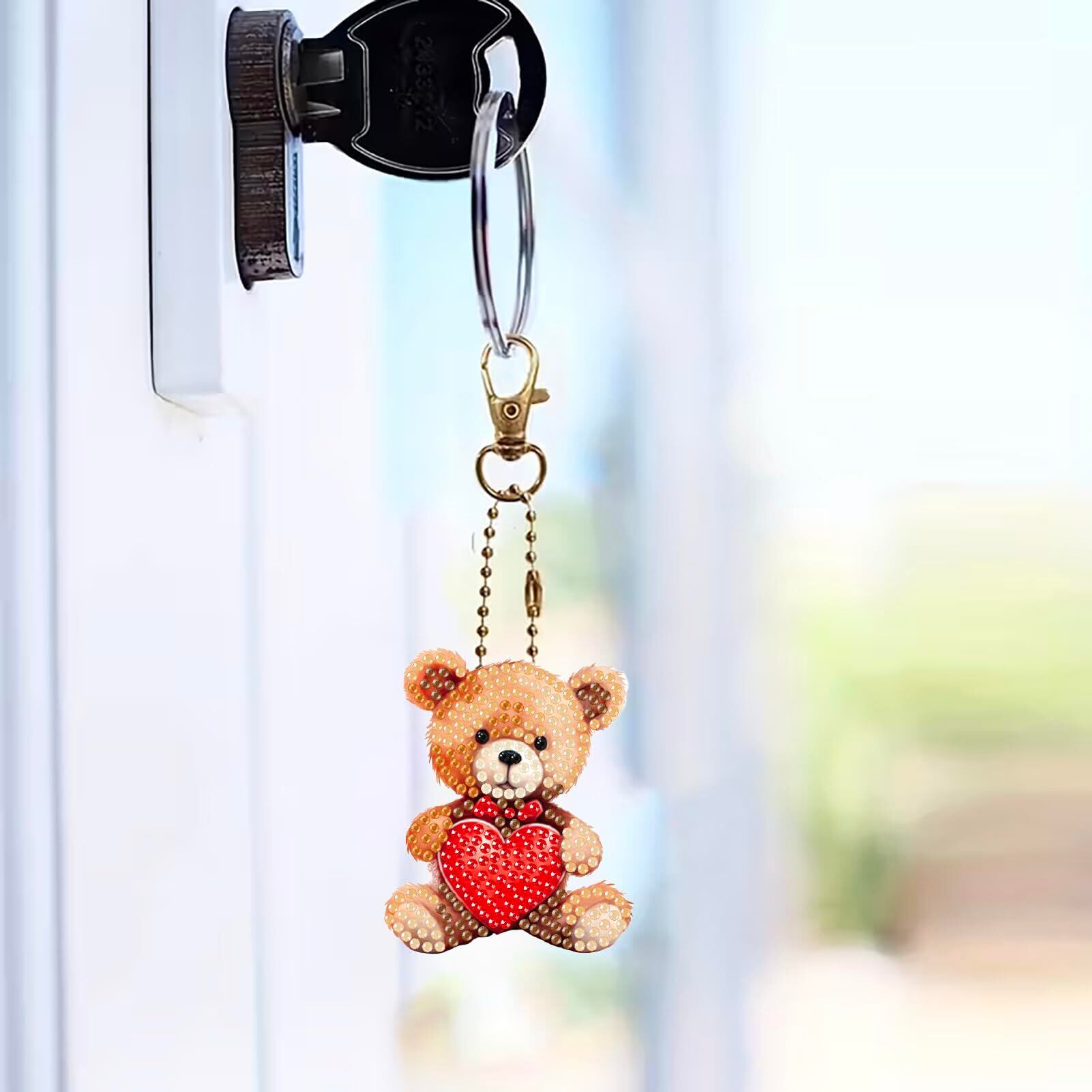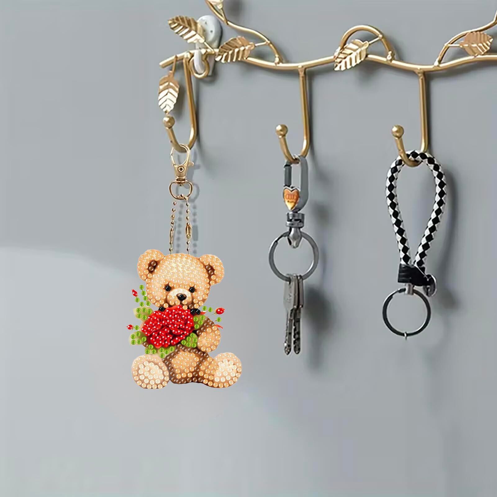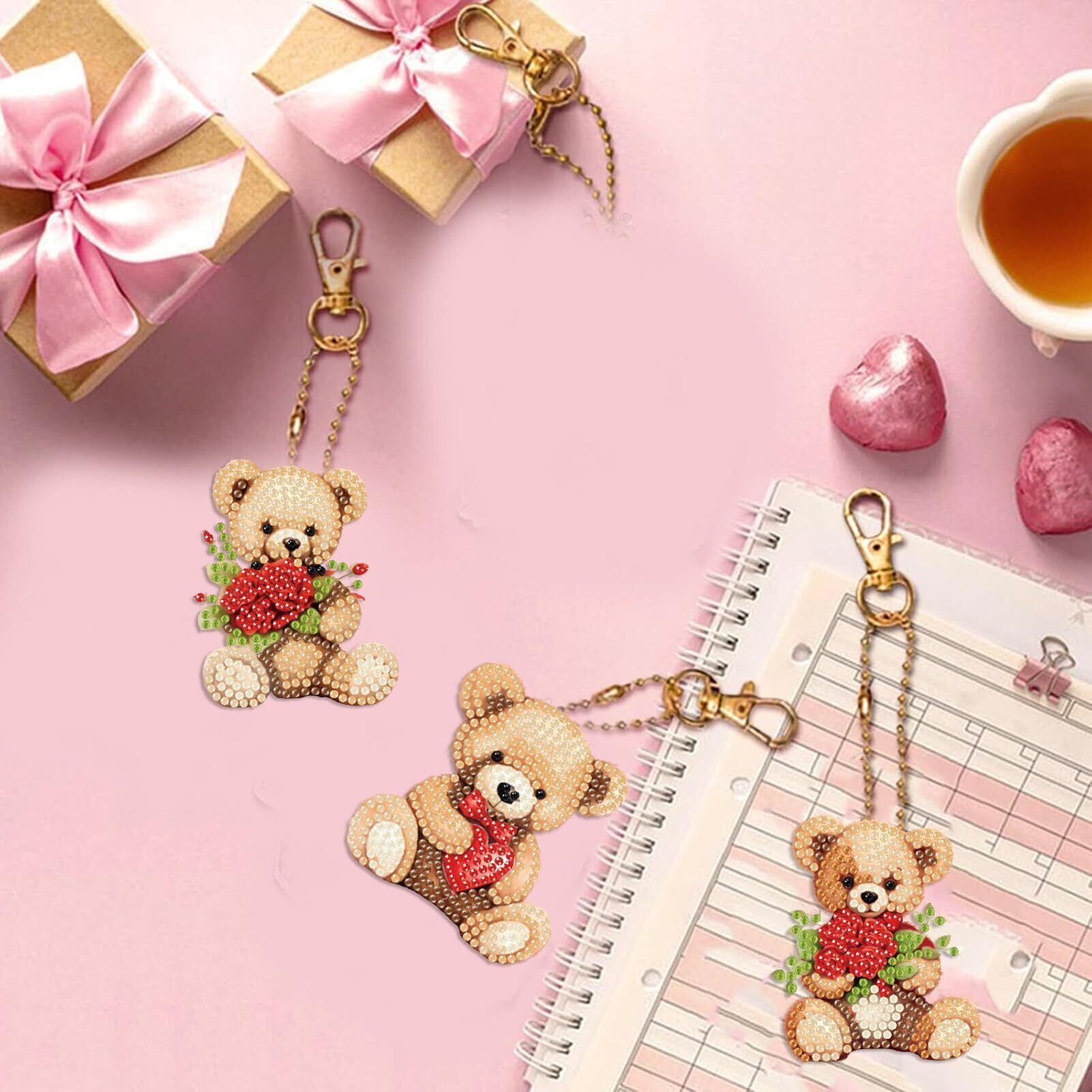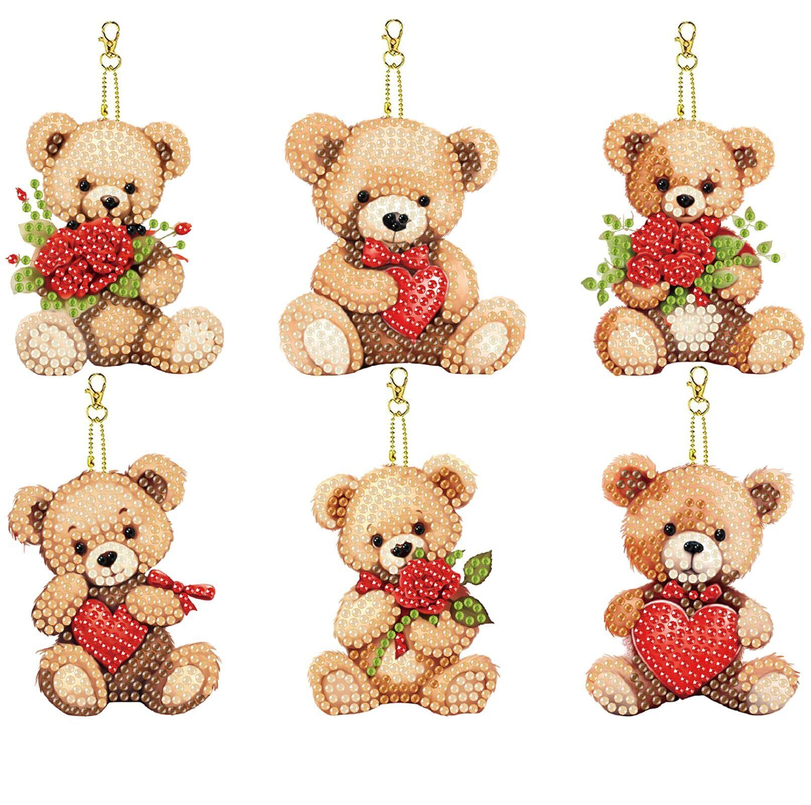 Amyaker ダイヤモンドアート キット 6個入 テディベア DIY キーホルダー 5Dダイヤモンド塗装キット ダイアモンドビーズ キーホルダー 両面全貼り付け DIY手作り 財布 キーペンダント バッグ 装飾用