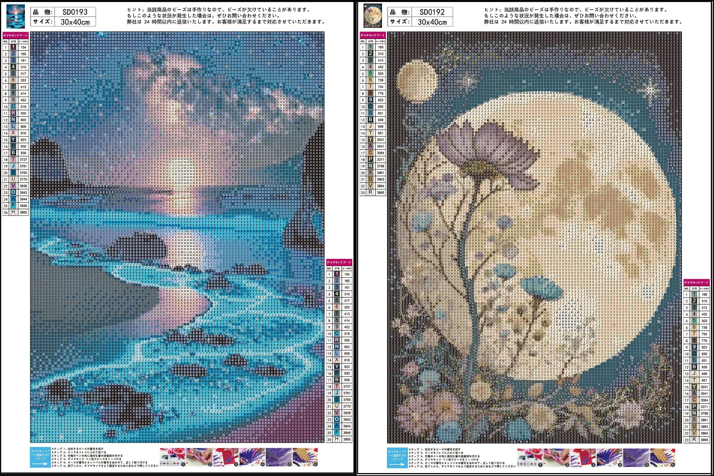Amyaker ダイヤモンドアート キット 四角いビーズ 全面 2個セット 日本語キャンバス ダイアモンドビーズ絵画キット DIY 手作り絵画 モザイクア 5D モザイクアート ダイヤモンド塗装 全面貼り付けタイプ 30x40cm 花 ムーン