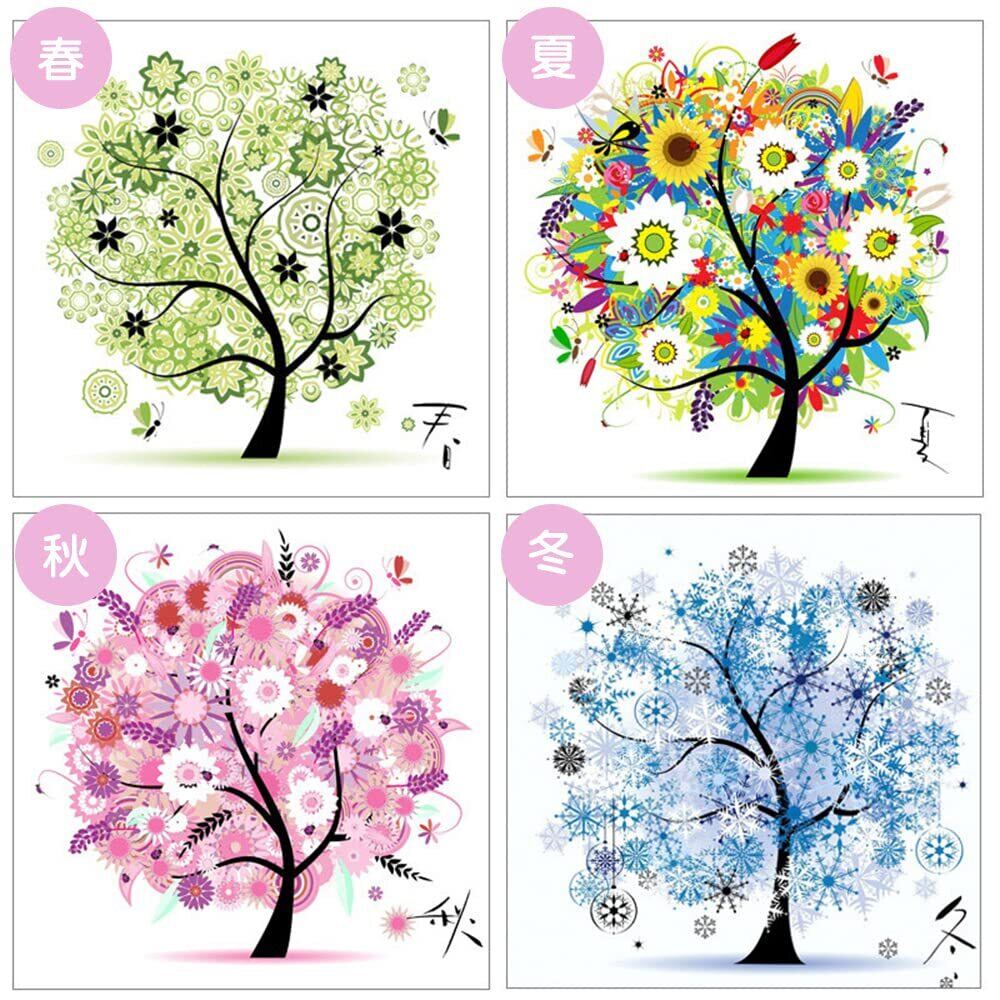サムコス 5Ⅾダイヤモンド塗装キット 春夏秋冬 4つセット DIYダイヤモンド塗装キット ダイヤモンド塗装 ダイヤ刺繡 全面貼り 立体画面 飾り付け 壁掛け 道具付き 大きいサイズ 初心者 接着剤不要