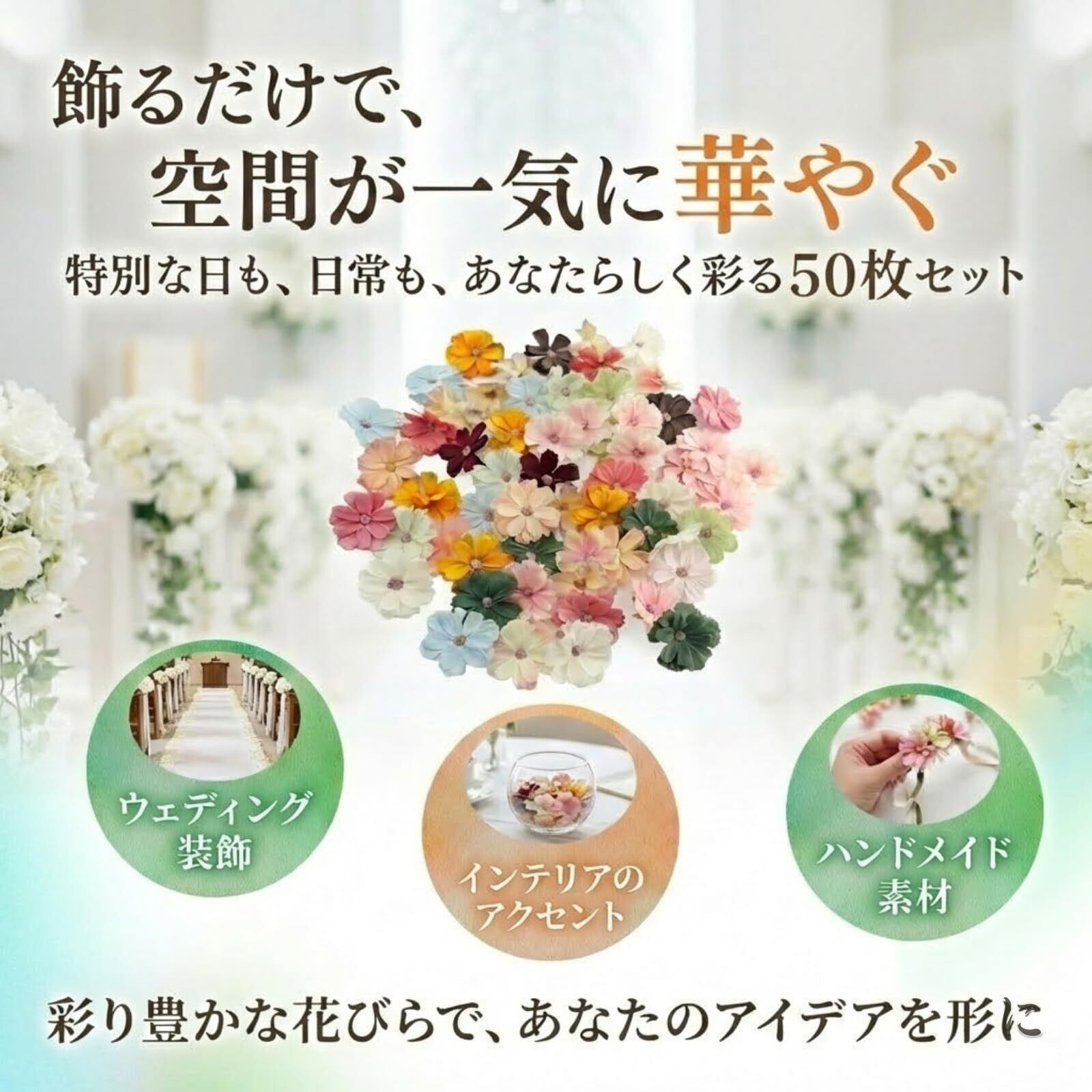 ideamall フェイクフラワー 花びら 造花 ウォールアート DIY クラフト 手作り 工作 混色50枚セット