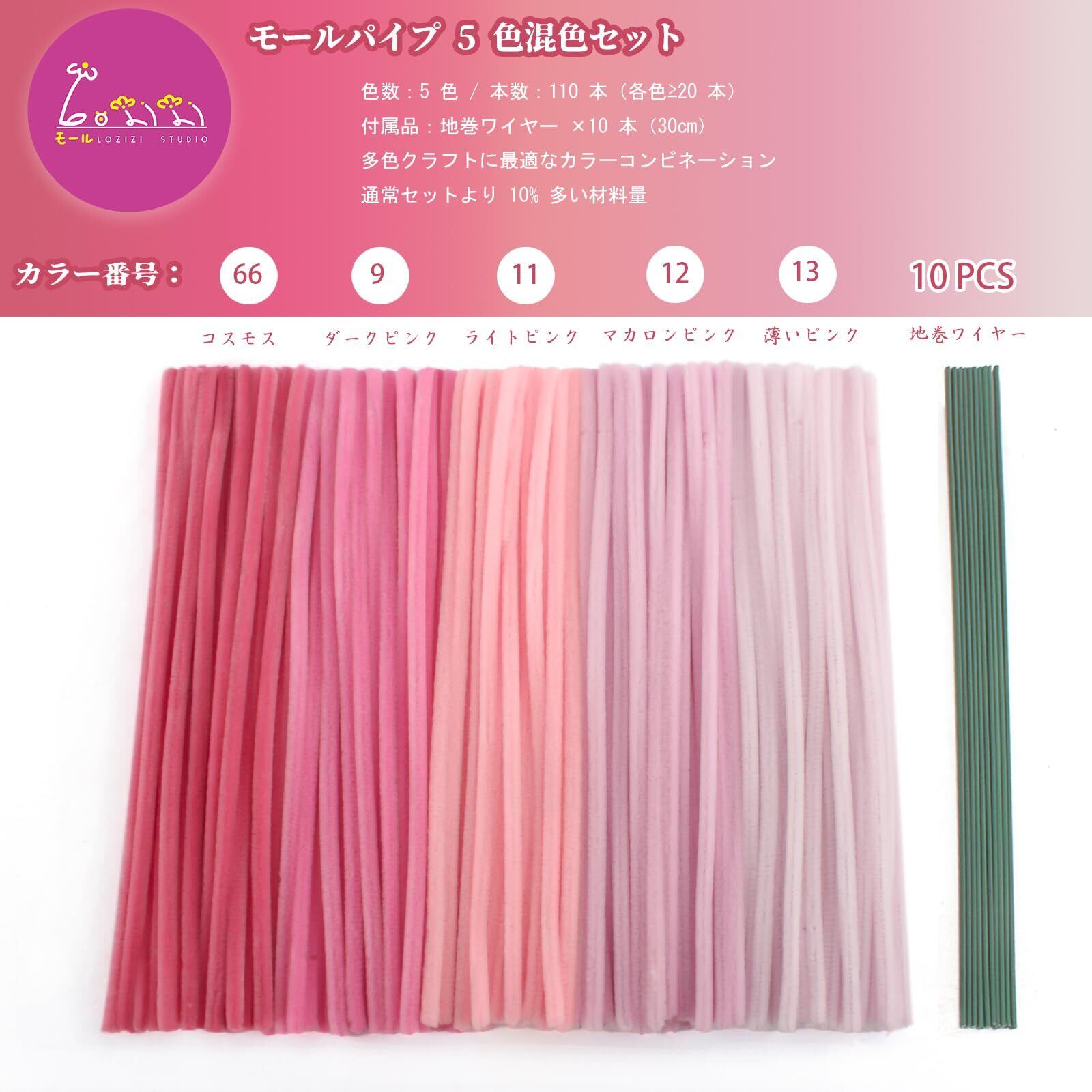 モール カラーミックス 6 mm 110本 カラー クラフト 手芸モール 花 フラワー ワイヤー アート DIY 飾り物 造形材料 学校 手作り素材 手芸 用品 10本のフラワーロッド (B-ピンク系ミックス)