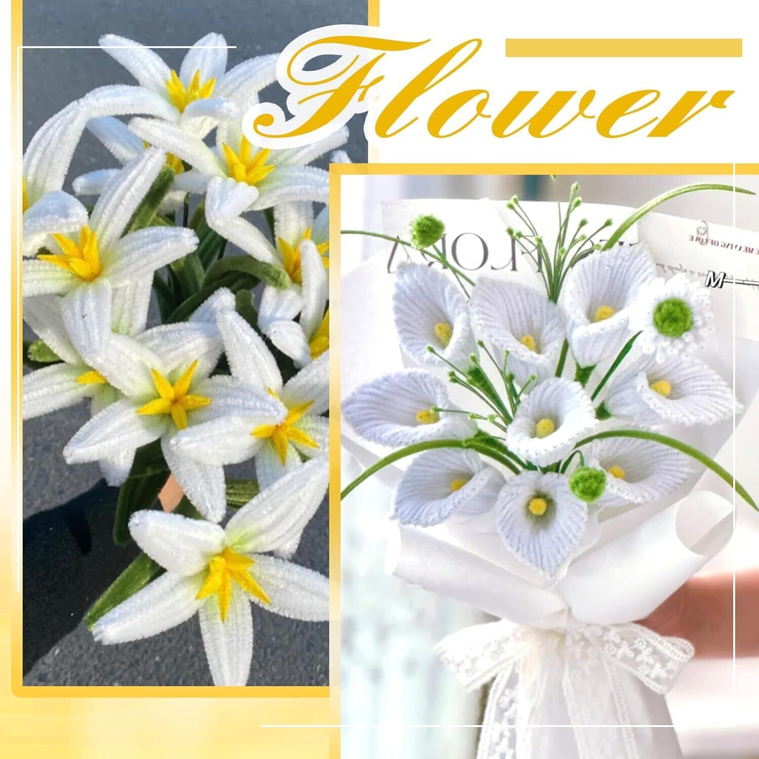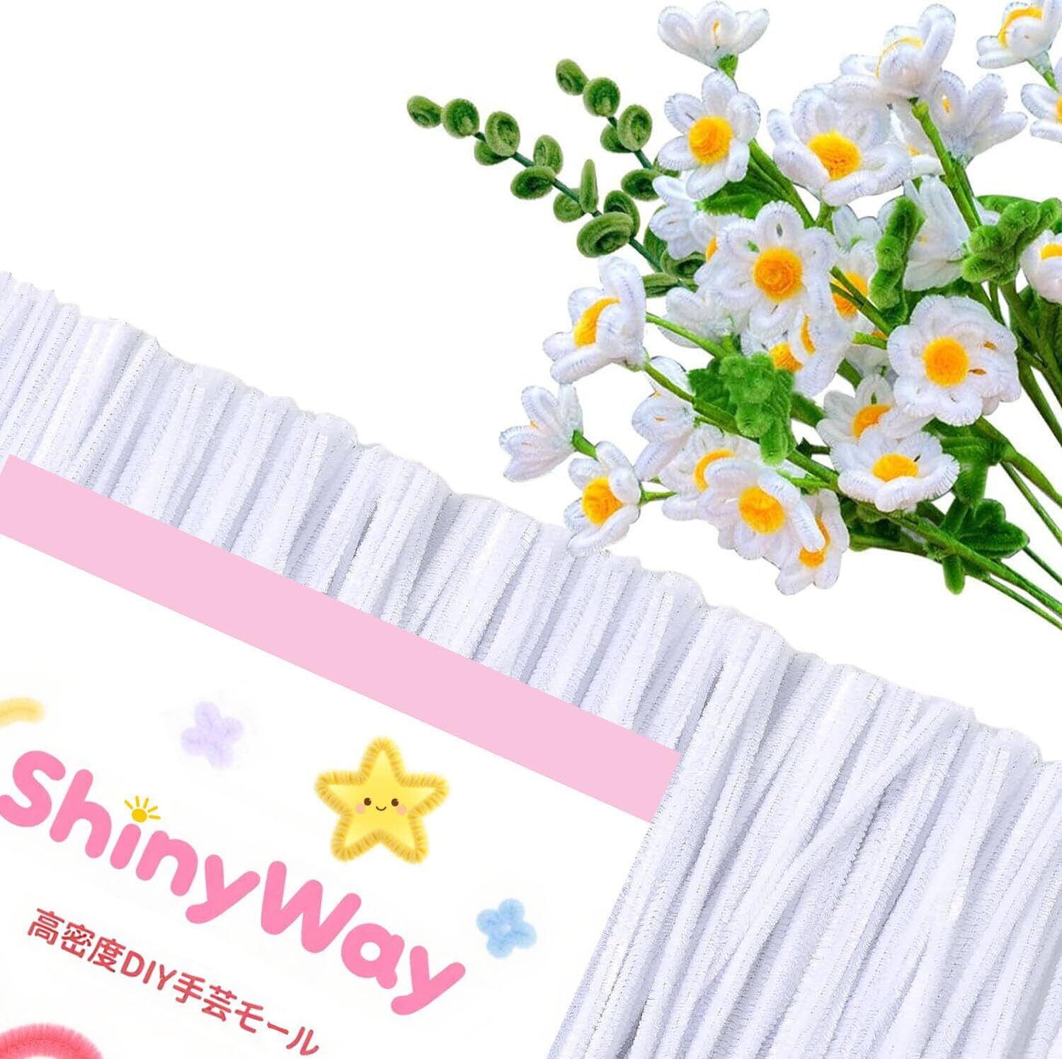 手芸モール 約100本 ふわふわ 高密度 6mm 30cm 造花 モール花束 誕生日 記念日 卒業式 プレゼント モールフラワー クラフトモール 工作モール 花 フラワー ワイヤー 骨格モール アート DIY 飾り物 造形材料 学校 手作り素材 手芸材料用品 (白)