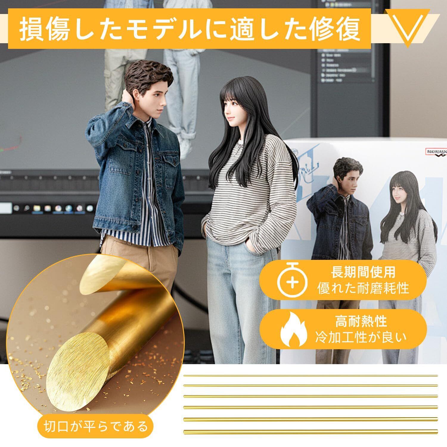 ✨【黄銅製・精密丸棒セット】 真鍮(黄銅)を素材とした、φ0.5/1/1.5/2/2.5/3mmの6サイズ各200mm長の丸棒セットです。金属工作の基本素材として、初心者から上級者までお役立てください。