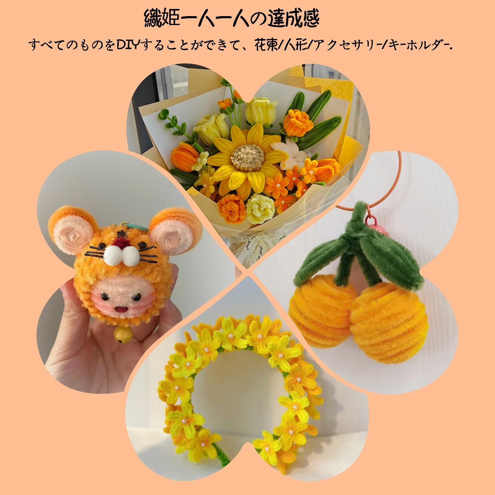 手芸モール 250本 カラーミックス フラワーモール 手作りキット 6mm 花束 モールフラワー キット クラフトモール 工作モール 人工花茎20本フラワーテープ緑1巻 双頭花おしべ DIY 飾り物 造形材料 学校 手作り素材 手芸 用品 記念日 誕生日 母の日 バレンタインデー 贈り物 (黄色)