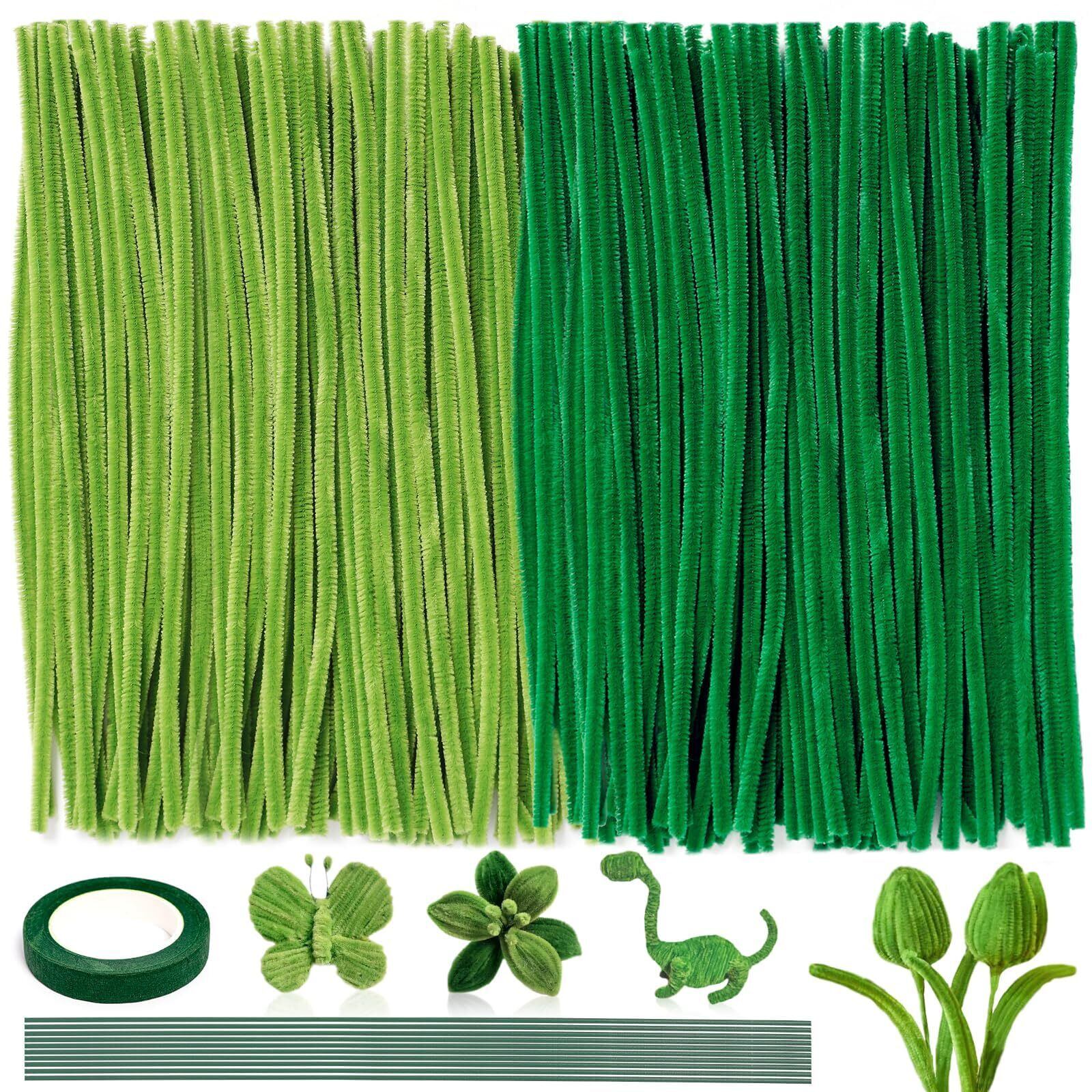手芸モール 約200本 カラーミックス カラーモール クラフトモール 工作モール 骨格モール アート DIY 飾り物 造形材料 手作り 手芸用品 (ミックスグリーン-2)