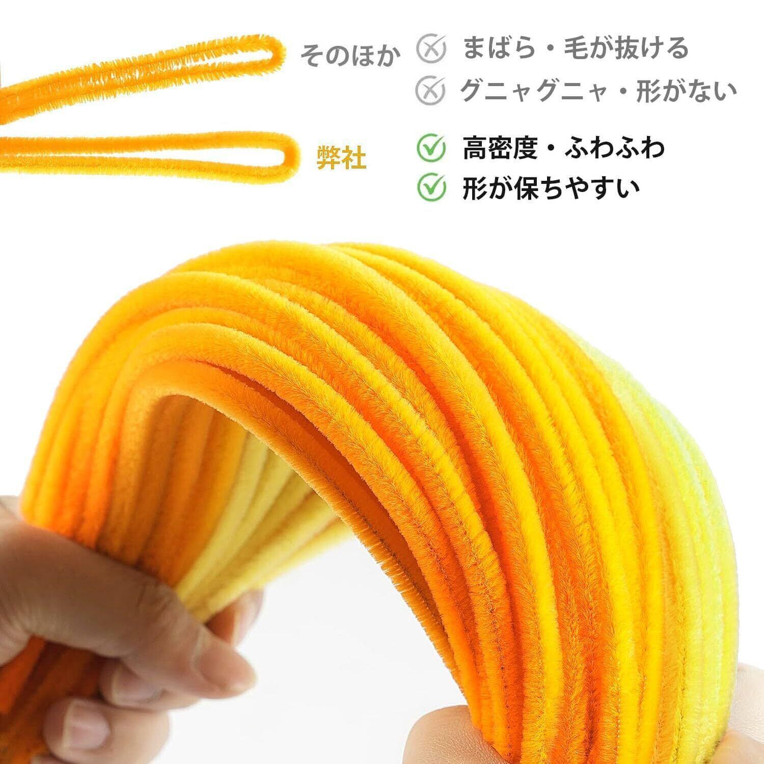 【カラフルな手芸モール】におわない安全な素材で作られ、子どものクリエイティブな遊びを安心サポート!毛糸たっぷりでモサモサして抜けにくい。柔軟な金属ワイヤー入りで、自由自在な造形可能で形が保ちやすい。折る・曲げる・切る・ねじるのが簡単。カラフルな色使いと柔らかな触感が子供の色・空間認識能力・指先の微細運動の発達を促進します。