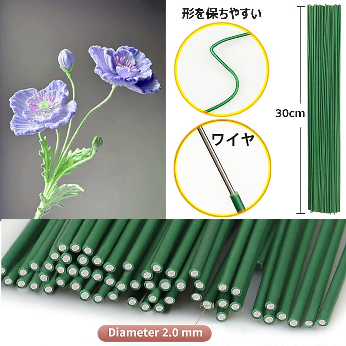 【ビニルコーティングワイヤー】節が無いストレートタイプの造花用針金、花径を作るのに最適。太さ2mmのワイヤーは硬めのためアレンジ後に形を保ちやすいです。サイズ:2mm*30cm、10本入。