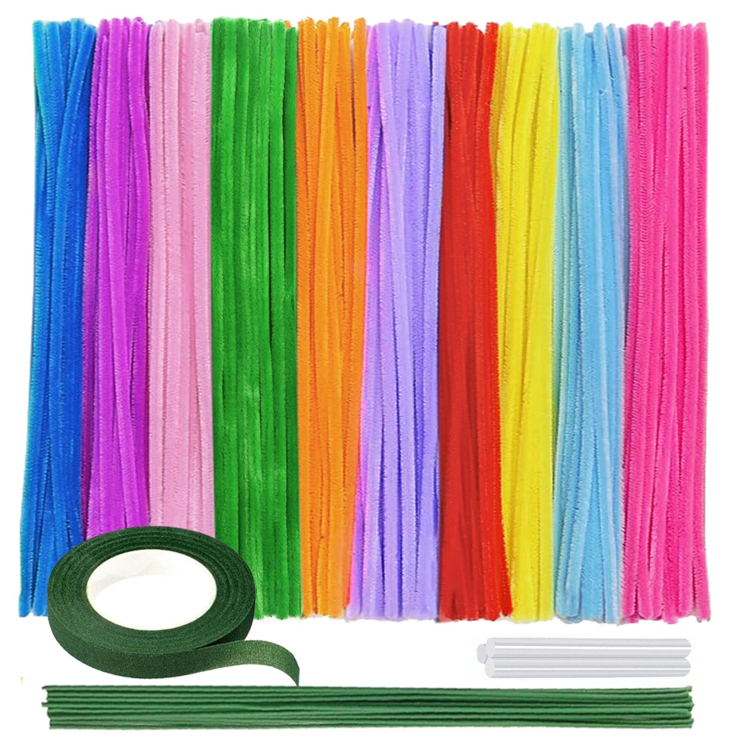 手芸モール ふわふわ 高密度 114点セット 10色 造花 ワイヤー 6mm 30cm フローラテープ グルースティック モール花束 誕生日 記念日 卒業式 プレゼント モールフラワー クラフトモール 工作モール 花 フラワーワイヤー 骨格モール アート DIY 飾り物 造形材料 学校 手作り素材 造花セット 手芸材料用品 (ブライトカラー)
