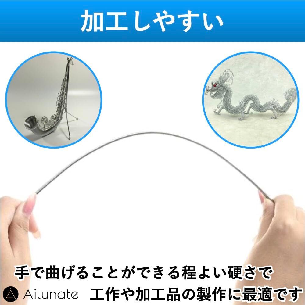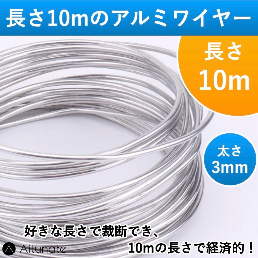 Ailunate アルミワイヤー 針金 太さ3mm アルミ線 ワイヤークラフト ハンドメイド 造形 盆栽 工作 DIY 10m ケーブル シルバー
