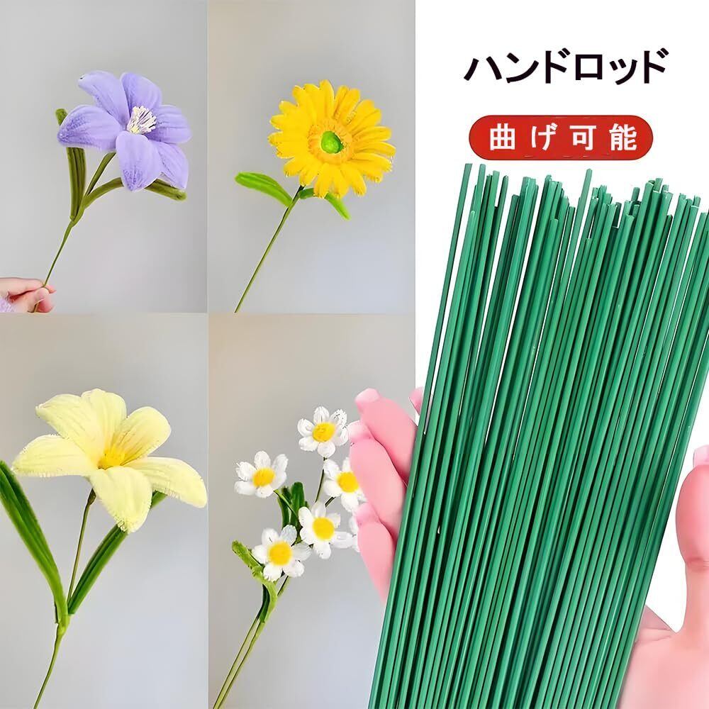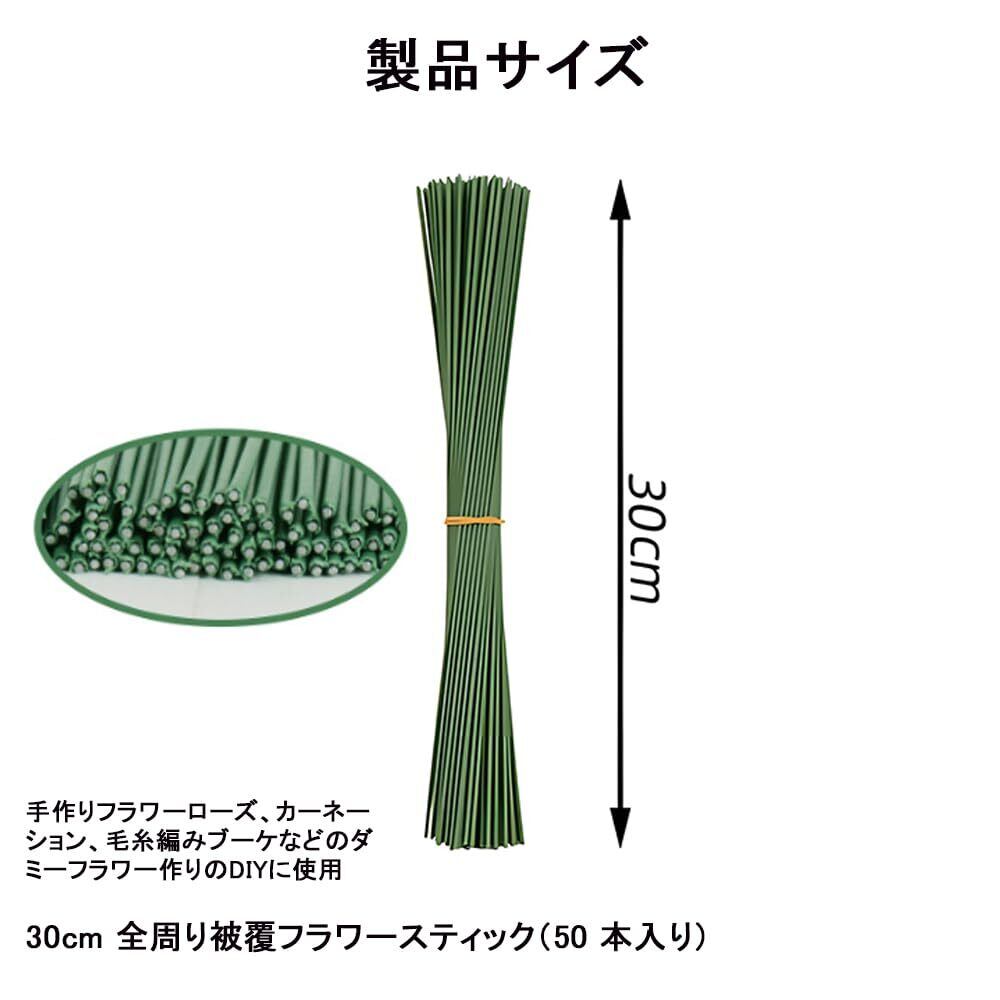 手芸モール フラワーワイヤー モールフラワー キット 造花用 地巻ワイヤー モール フラワー 曲げ可能 花茎ワイヤー 30cm×2.2mm 50本+フローラルテープセット DIY手作り 手芸材料