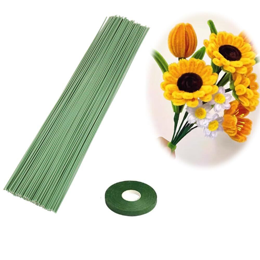 【高品質素材】ステムはプラスチックで被覆された鉄線を使用し、サビに強く耐久性があります。テープは粘着性のあるクレープ紙で作られ、葉のような自然な質感を再現。モール フラワーや手芸作品にぴったりです。
